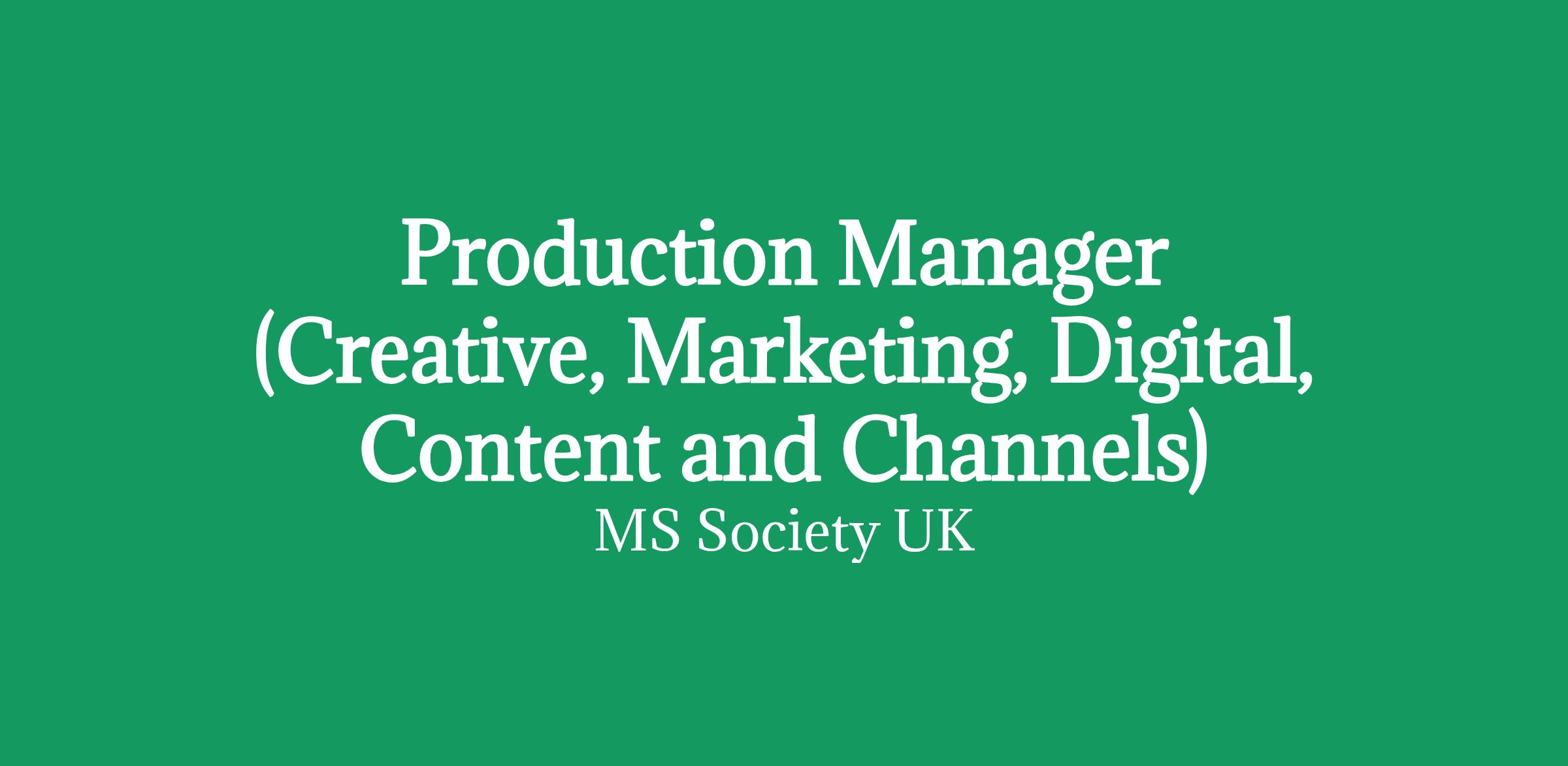 Production Manager (Creative, Marketing, Digital, Content and Channels)