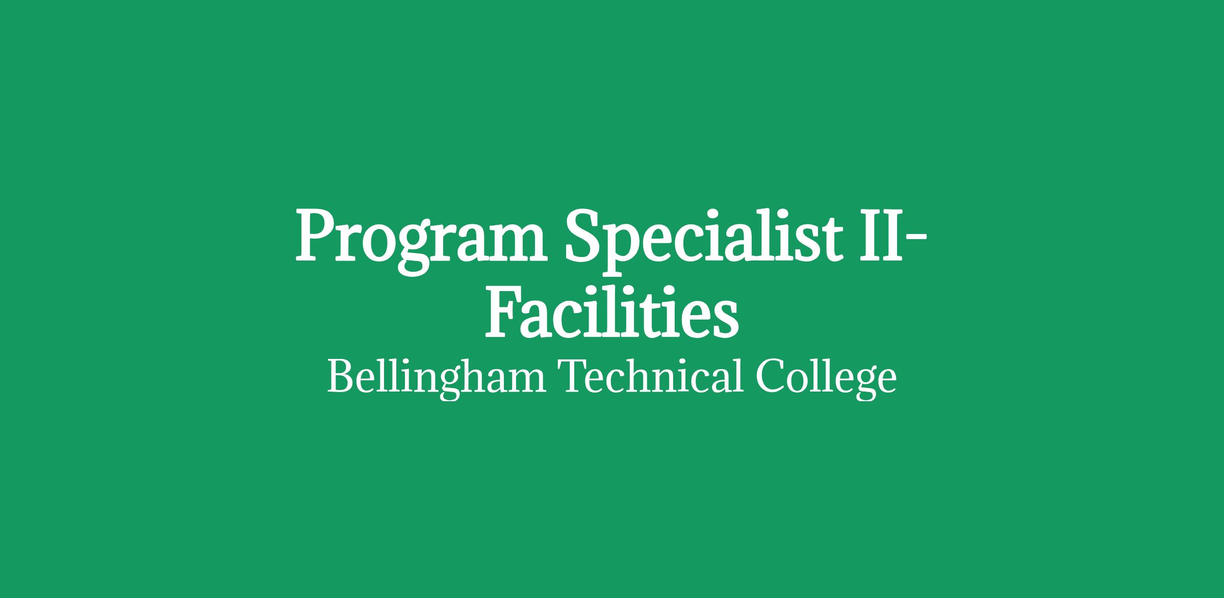 Summary: Be at the center of what keeps campus running. As a Program Specialist 2 in Facilities at Bellingham Technical College, you'll coordinate essential operations, connect teams and partners, and help turn plans into action that directly supports students and staff. If you're a proactive problem-solver who thrives on collaboration and making a tangible impact, this is your chance to shape the daily experience of an entire campus.Salary: Starting salary is $5,054 per month which is based on $60,648; $29.04 per hour.