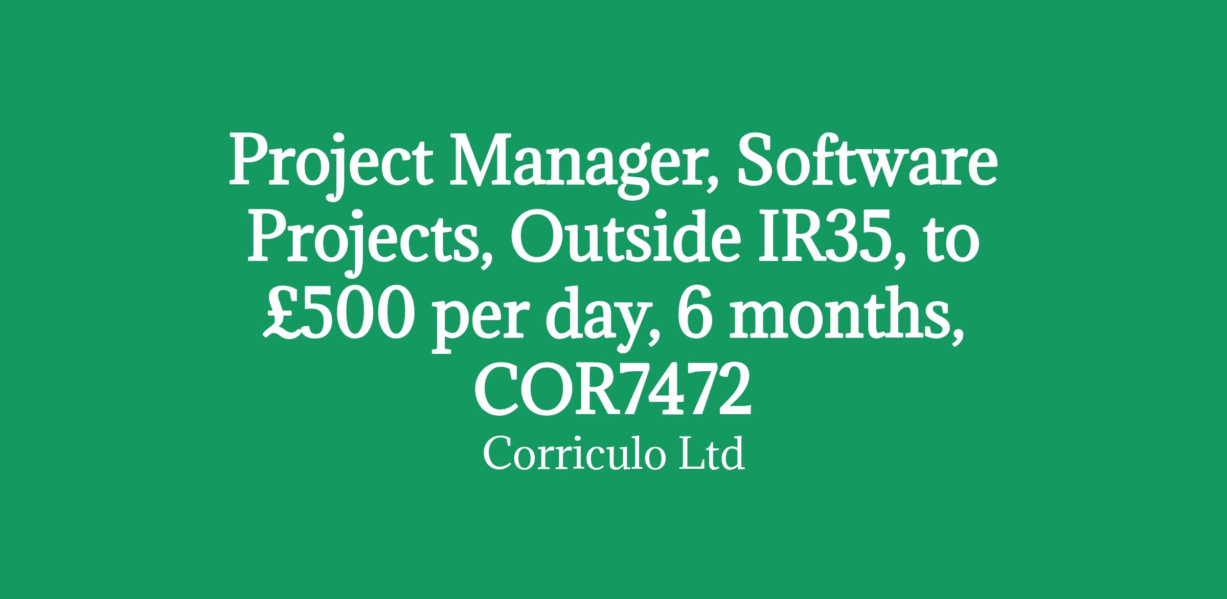 Project Manager, Software Projects, Outside IR35, to £500 per day, 6 months, COR7472