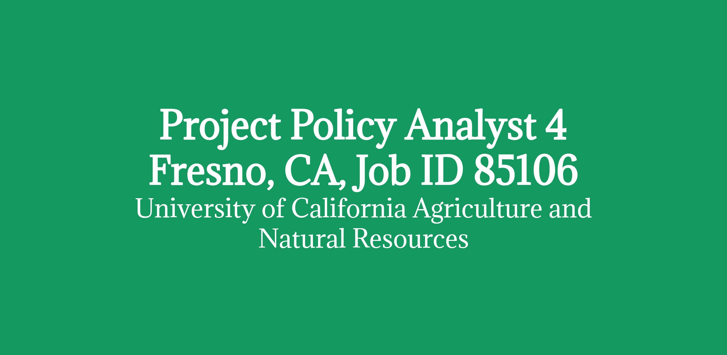 Project Policy Analyst 4 Fresno, CA, Job ID 85106
