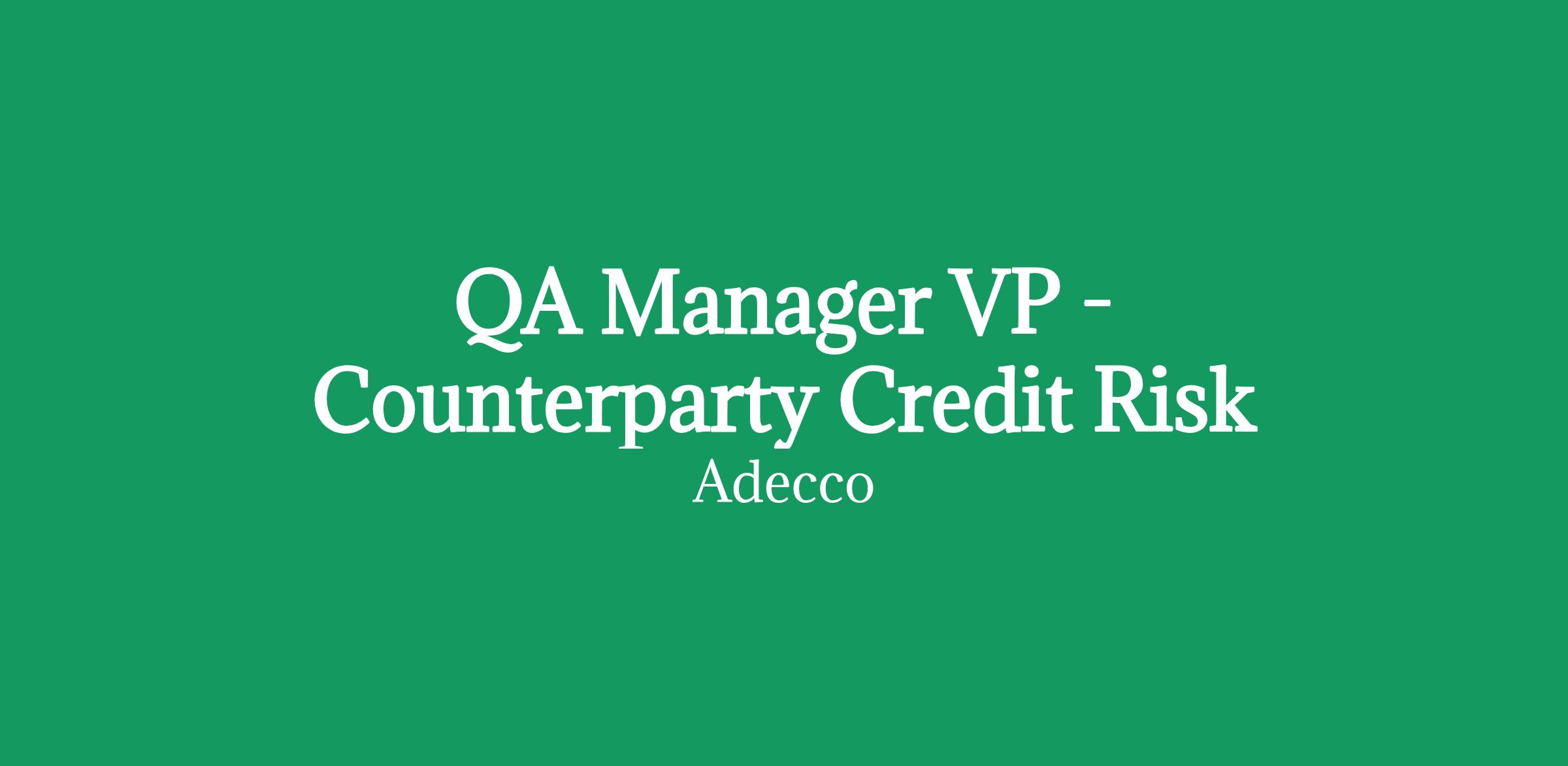 Job Title: QA Manager VP - Counterparty Credit Risk
