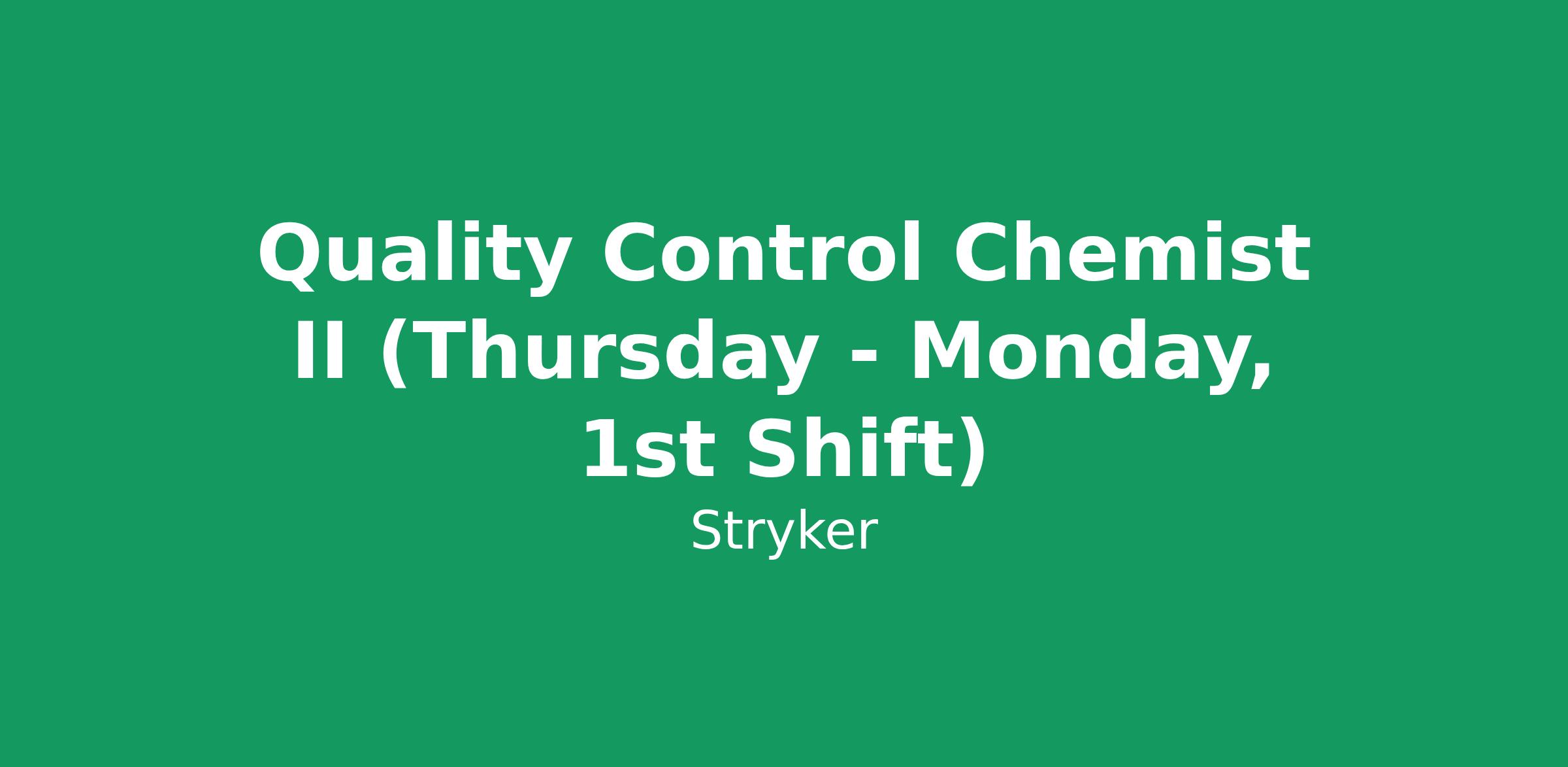 Cary, IL! The position of QC Chemist II is responsible for performing advanced analytical analysis of raw materials, in-process solutions, stability, finished goods, cleaning samples, as well as general laboratory support.