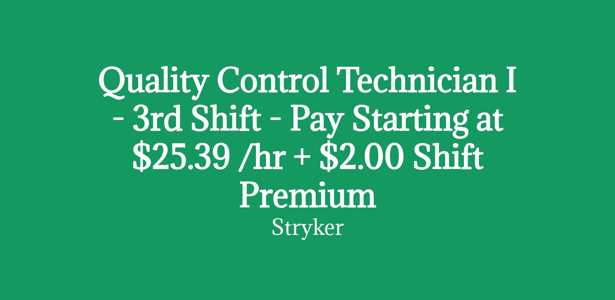 3rd shift: Sun - Thurs, 11:00 pm - 7:00 am QC Technician will train on 1st shift and then transition to 3rd shiftThe 3rd shift QC Technician I position is responsible for supporting essential laboratory functions, including cleaning glassware, restocking supplies, performing basic instrument maintenance, and preparing reagents. You will also assist in routine analytical and microbial testing to ensure quality standards are maintained.