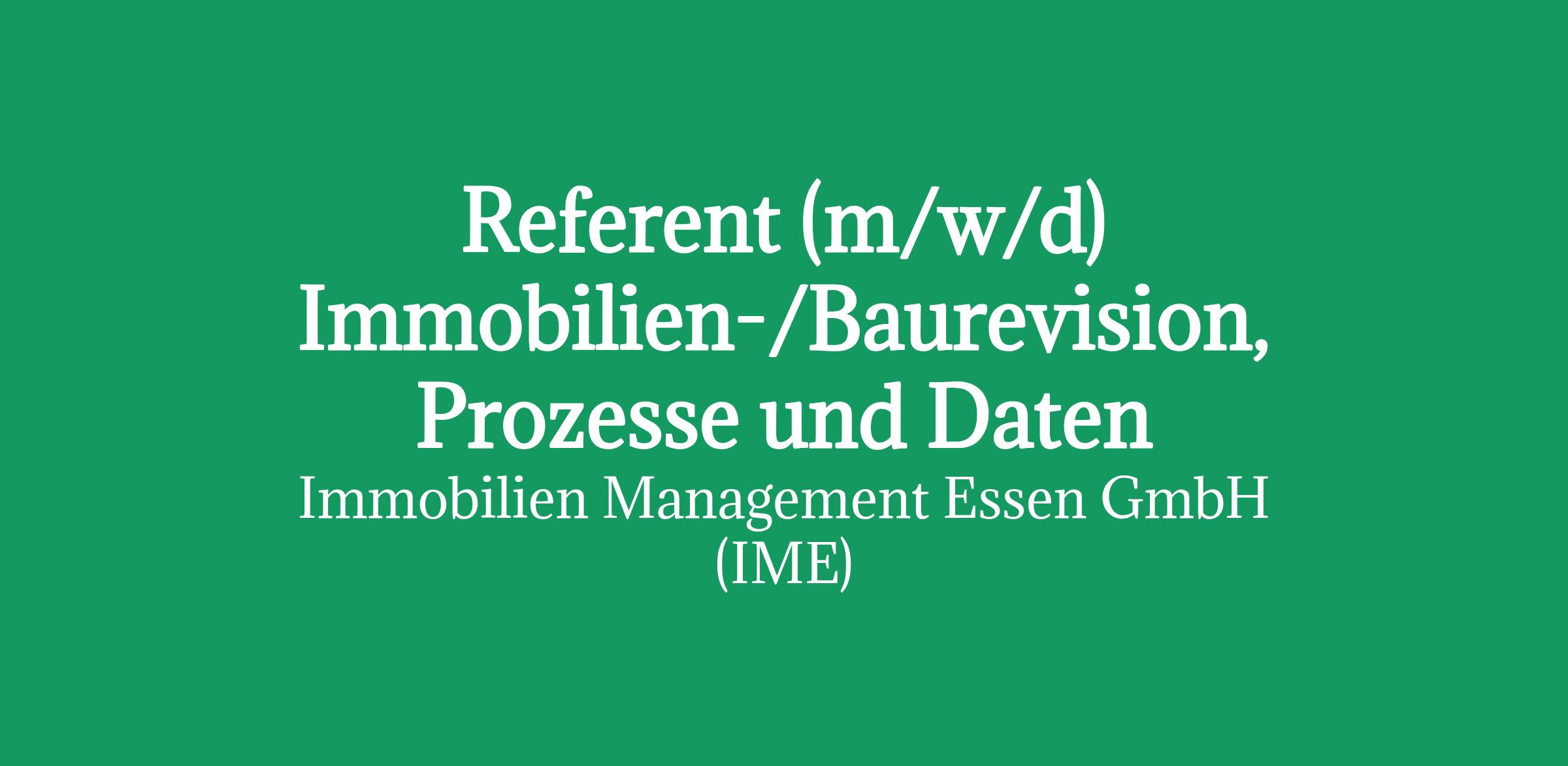 Die Immobilien Management Essen GmbH (IME) vereint als strategische Steuerungseinheit und Konzernmutter ihre operativen Einheiten, die Allbau-Unternehmensgruppe und die GVE Grundstücksverwaltung Stadt Essen GmbH mit ihren Beteiligungsgesellschaften, zu dem Immobilienkompetenzzentrum der Stadt Essen. Mit insgesamt rund 420 Mitarbeitern - davon 200 kaufmännische, 130 technische und 90 gewerbliche - unterstützt der IME-Konzern die Stadt Essen bei wesentlichen Investitionsherausforderungen sowie der Stadt- und Quartiersentwicklung. Wohn-, Gewerbe-, Verwaltungs-, Kultur- sowie weitere kommunale Immobilien werden professionell aus einer Hand effizient betreut und nachhaltig entwickelt. Unter dem Dach der IME sind sämtliche Zentralfunktionen des Immobilienkonzerns vereint; hierzu zählen insbesondere die Ressorts/Stäbe Personalmanagement und Services, Finanzen und Konzernentwicklung, Unternehmenskommunikation, Recht, Revision, Compliance und Datenschutz sowie die Steuerungseinheiten für die operativen Geschäftsbereiche der Allbau- und GVE-Gruppe. Zusätzlich verantwortet das Referat Schulbau wichtige Handlungsfelder.