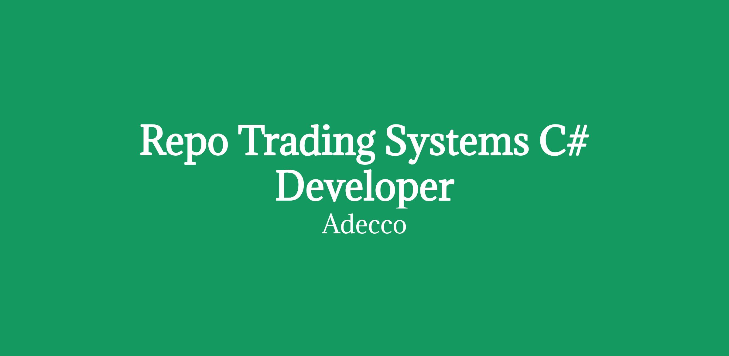 Job Title: C# Developer - Fixed Income and Repo Trades