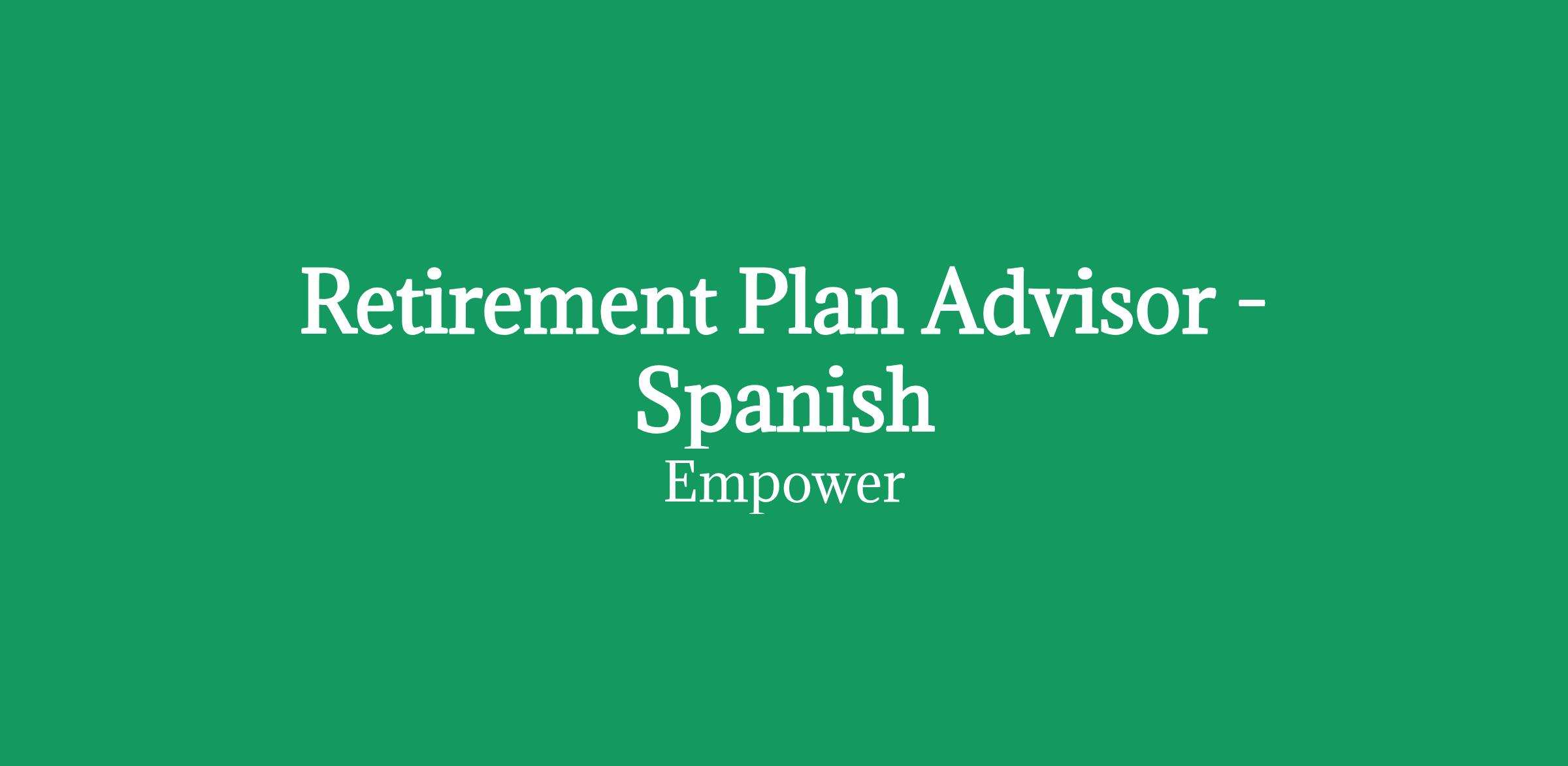 This Advisor will work with plan participants on the West Coast and bilingual Spanish skills are required.