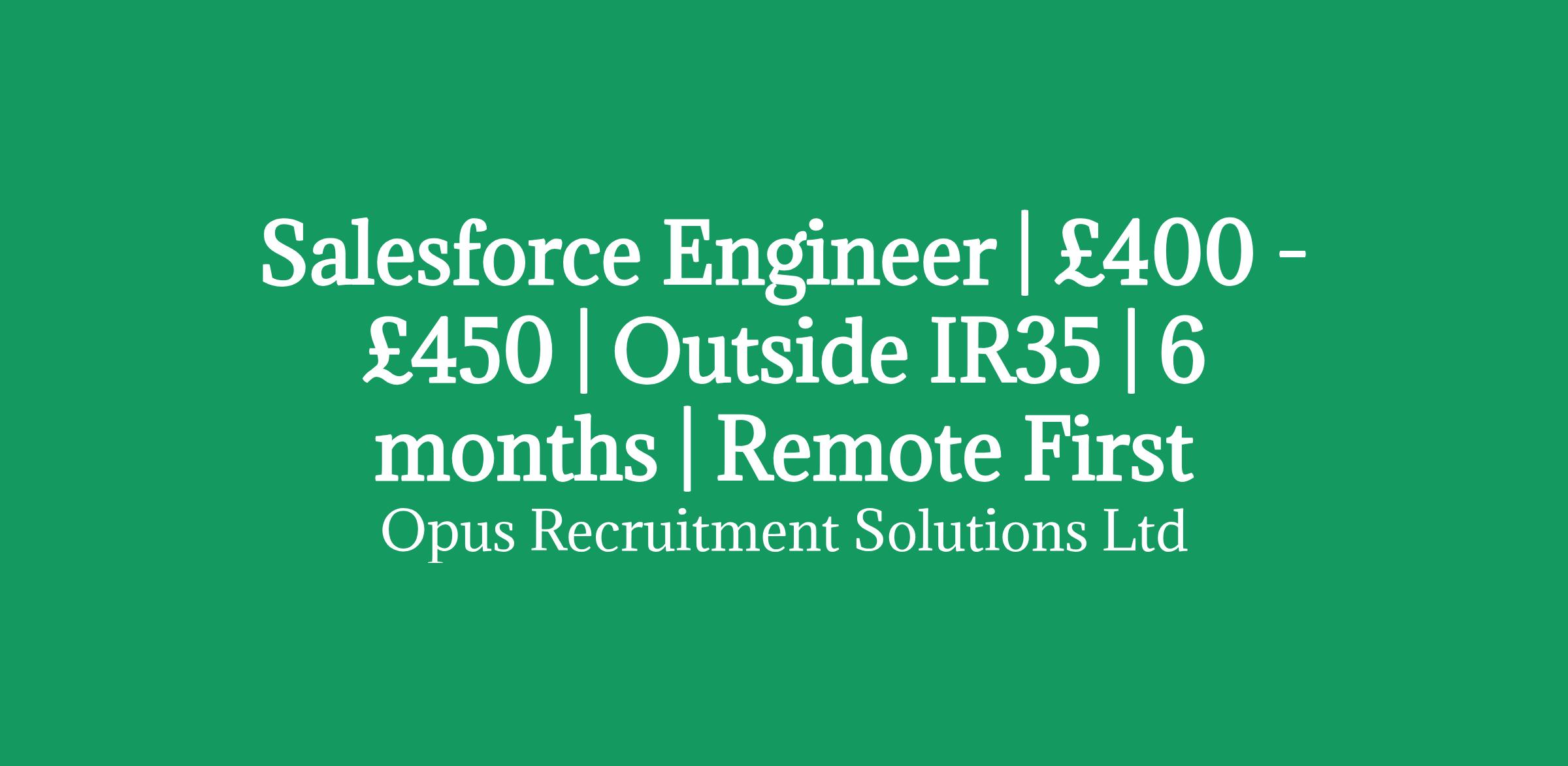 Salesforce Engineer | £400 - £450 | Outside IR35 | 6 months | Remote First