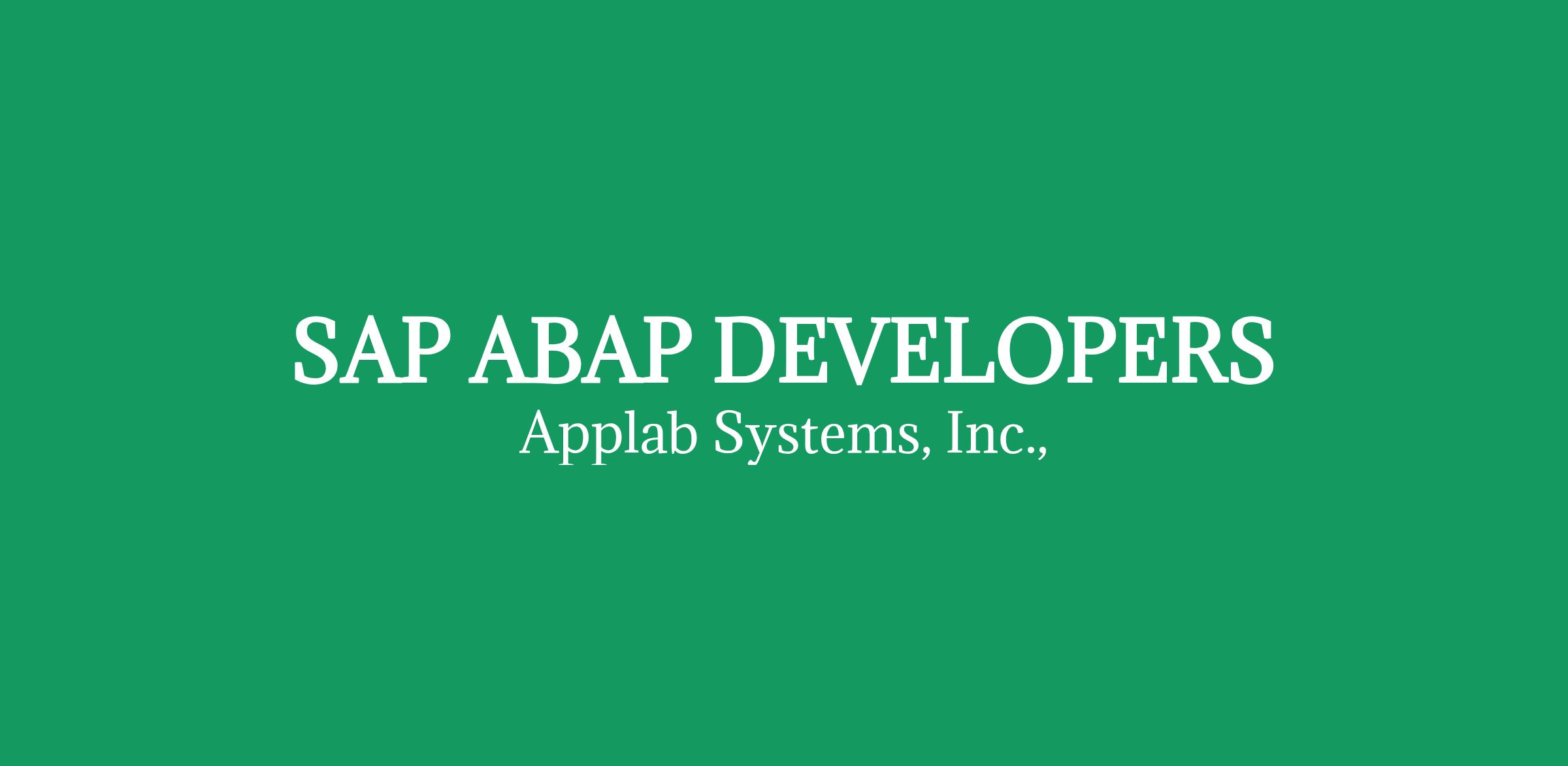 SAP ABAP DEVELOPERS: Princeton, NJ & various unanticipated locations throughout the U.S.: Anlyz biz rqmts, dsgn strtgy & dvlpmnt aprch. Dsgn & dvlp intrfcs u/techs as IDocs, BAPIs, RFCs, web services, or file-bsd intgrtn. Dvlp ALV Rpts, Implct Enhncmnts, BADI Implmnttns, Smart Forms, BDC's. Impl SAP to non-SAP intrfcs (Service Now/PWC/ITSM) for Asset acc. Intgrt SAP w/third-party pay gtwys (PayPal, Stripe, CyberSource) u/secure REST APIs. Atmt FI pstngs for credit card trnsctns u/BAPI_ACC_DOCUMENT_POST. Master's in Sci, Tech, Biz Admin, or Engg (any) is req'd. Salary: $131997.00. Mail CV: HR: Applab Systems, Inc., .