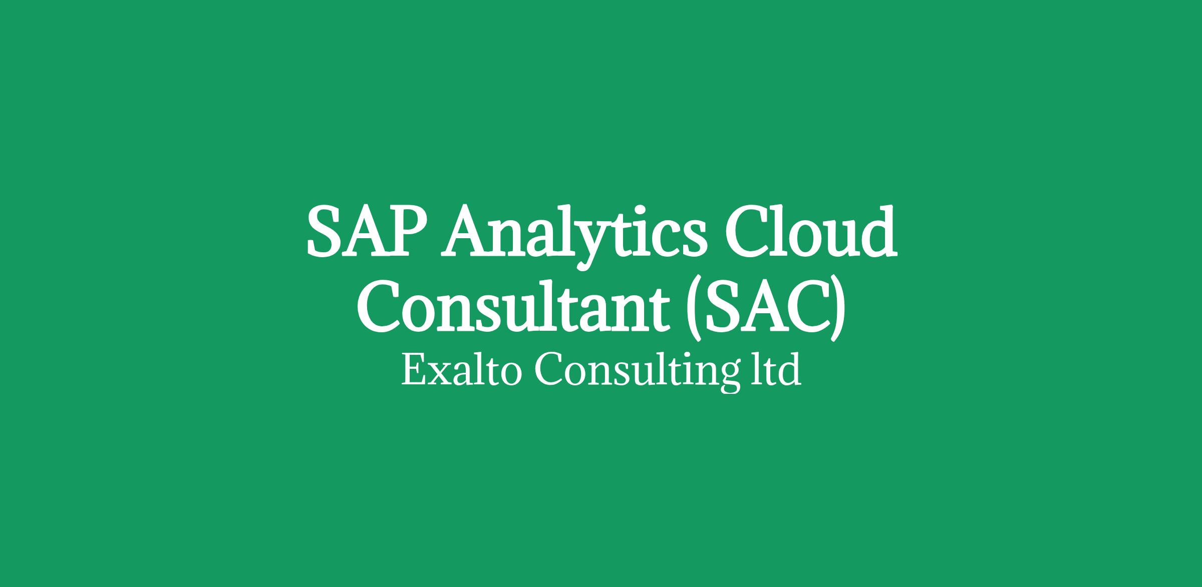 SAP Analytics Cloud Consultant - (SAC) - 6 months contract - Remote - upto £525 Per Day My client is seeking to recruit a SAP Analytics Cloud Consultant on an initial 6 months contract which may well extend thereafter.
