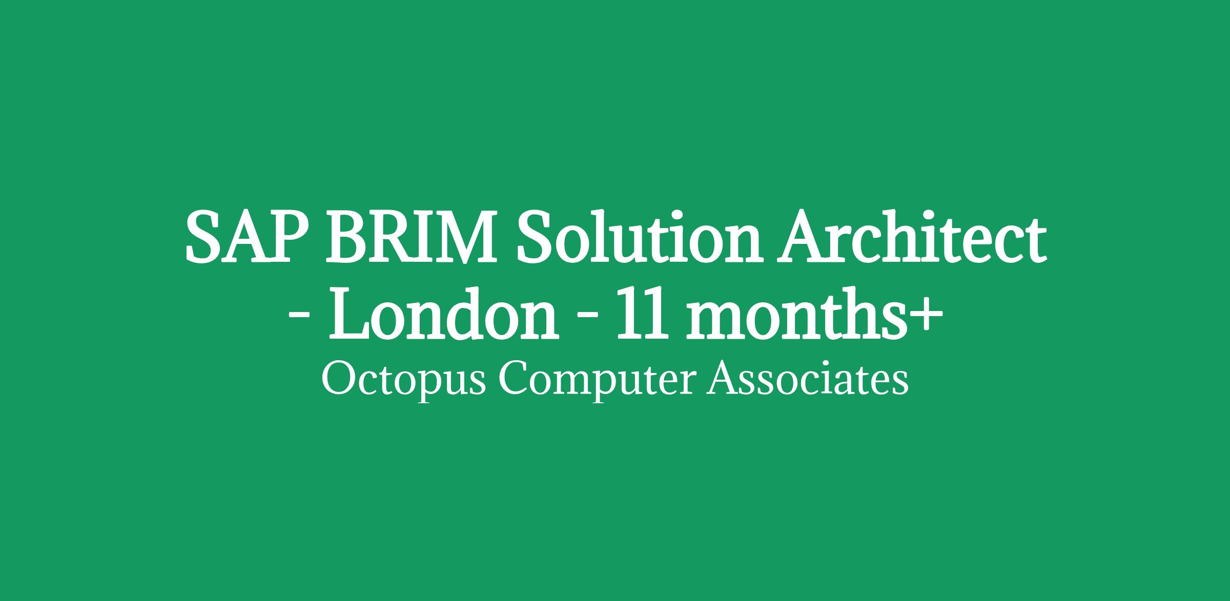 SAP BRIM Solution Architect - London - 11 months+/RATE: £787 per day inside IR35