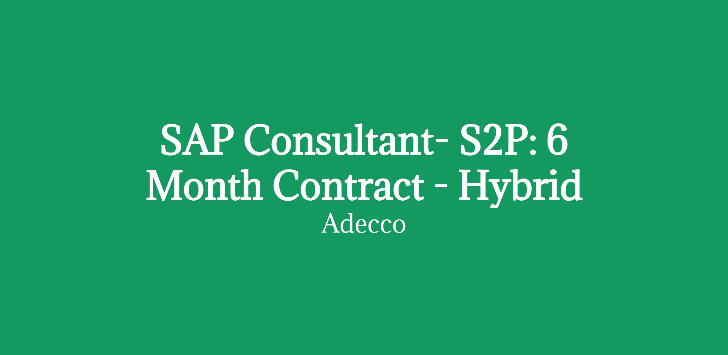 SAP Consultant- S2P: 6 Month Contract - Hybrid