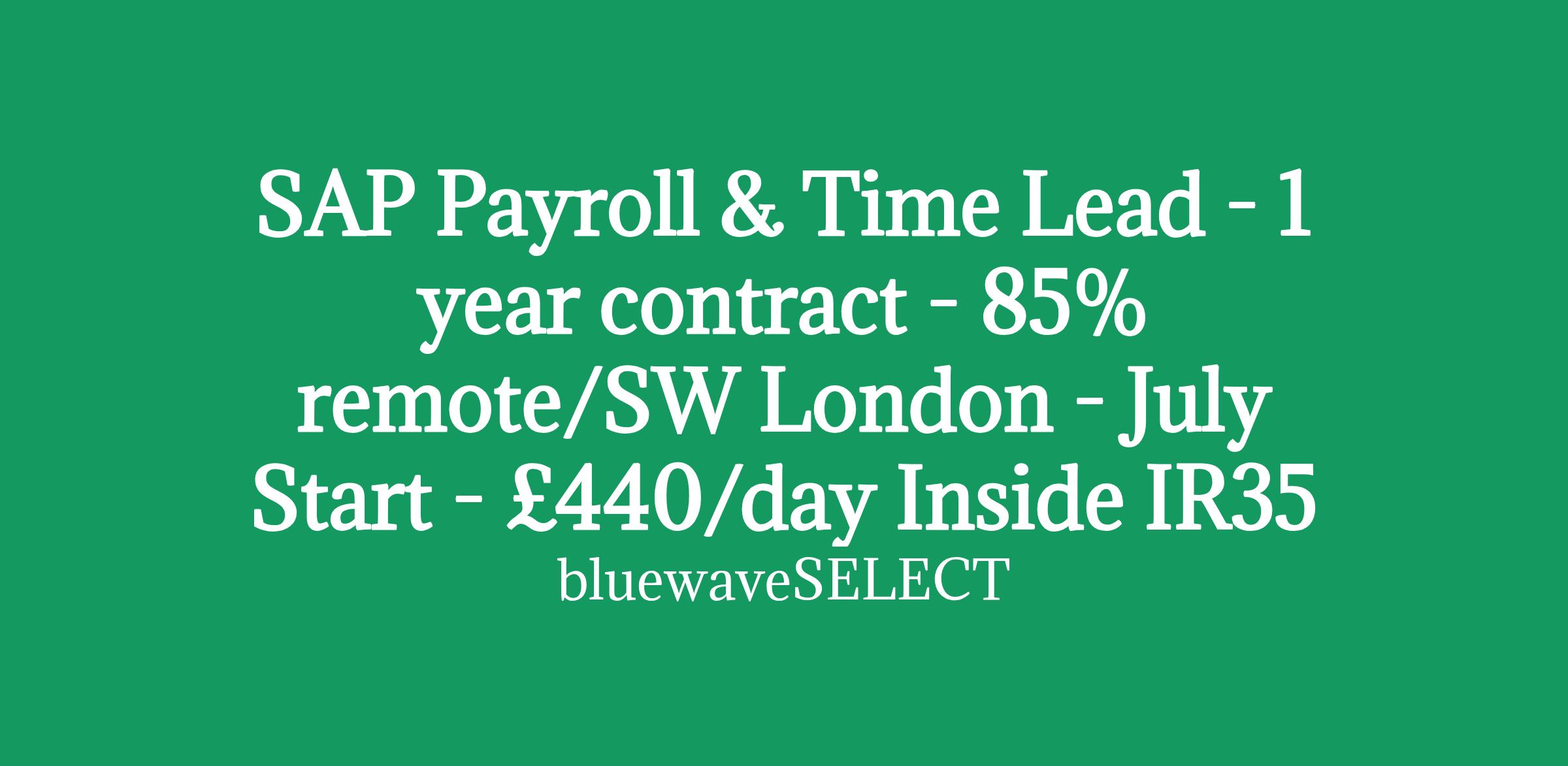 SAP Payroll & Time Lead - 1 year contract - £440/day Inside IR35 (paid to the umbrella) - 85% remote/SW London travel - July Start