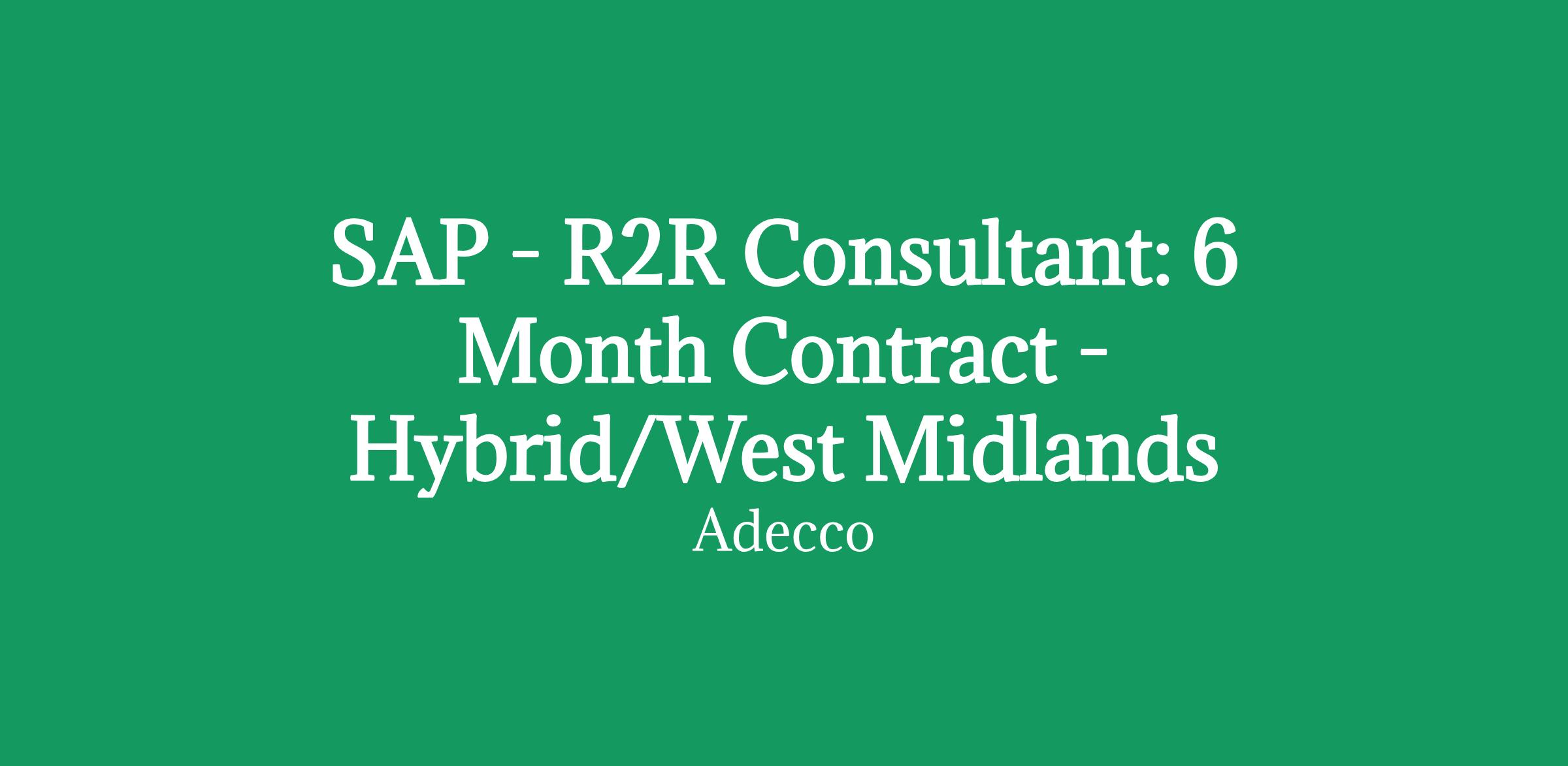 SAP S/4 Hana - R2R Consultant: 6 Month Contract - Hybrid/West Midlands