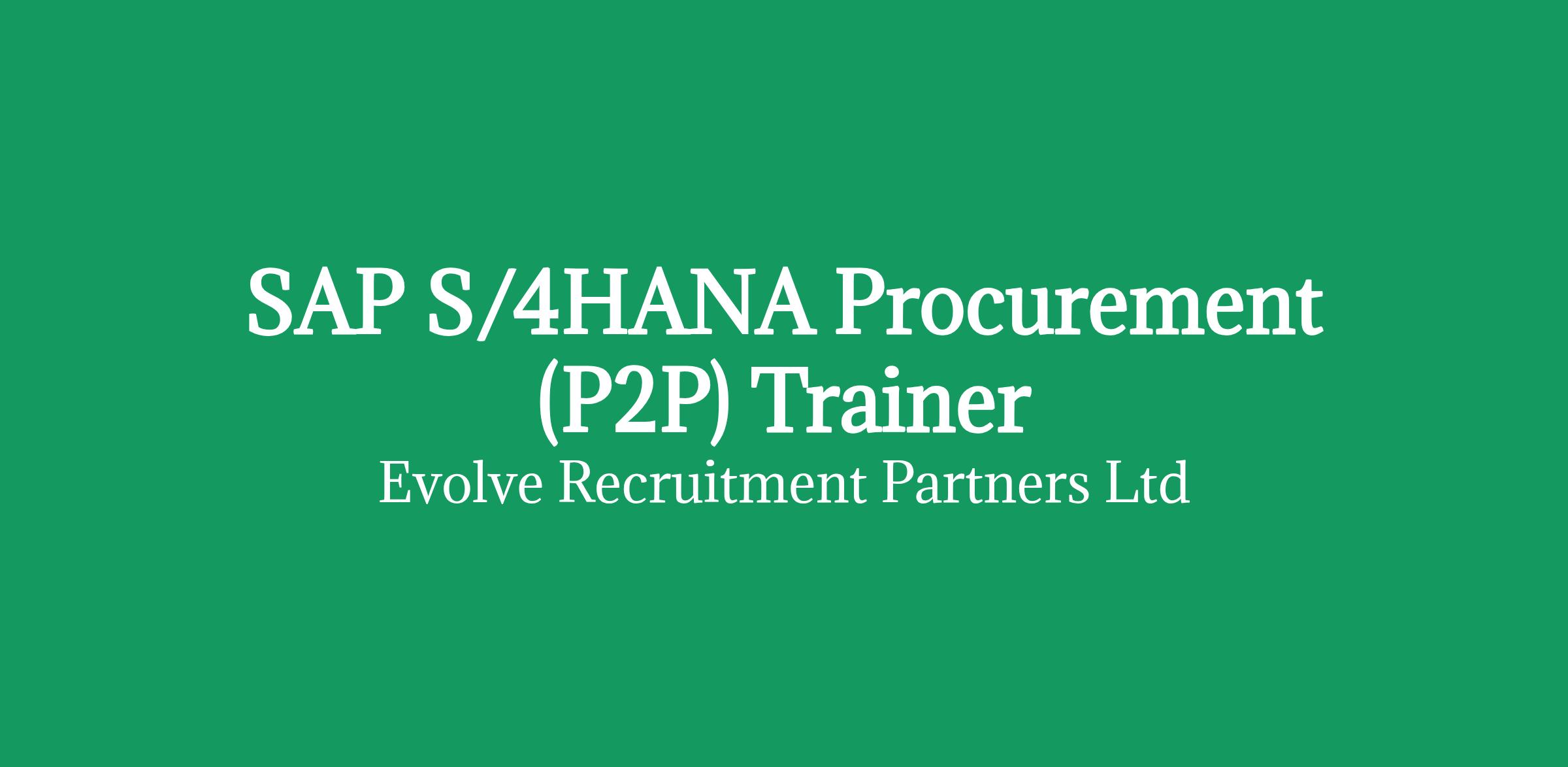 Evolve ERP are looking for an experienced SAP S/4HANA Procurement (P2P) Trainer to support a system implementation and business roll out. You will deliver engaging training using SAP Fiori apps and provide on-site support during go-live and early adoption.