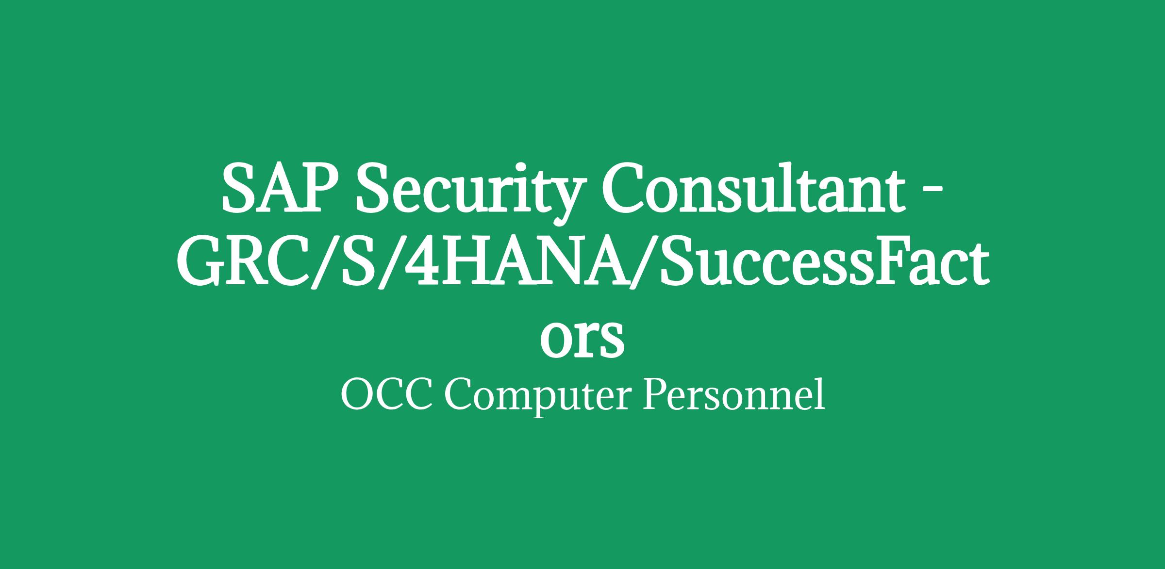 SAP Security Consultant - GRC/S/4HANA/SuccessFactors