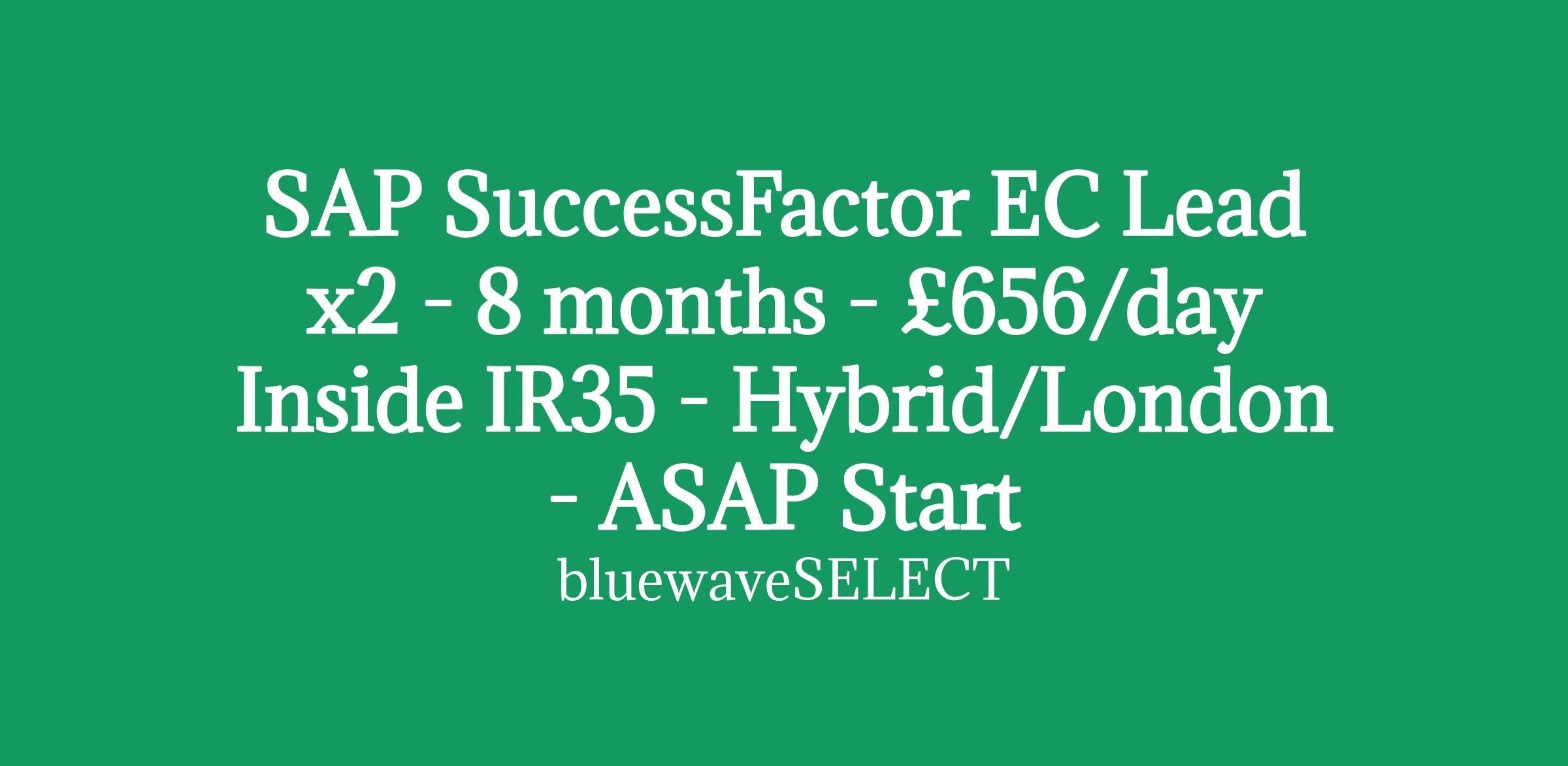 SAP SuccessFactor EC Lead x2 - 8 months - £656/day Inside IR35 - Hybrid/London - ASAP Start