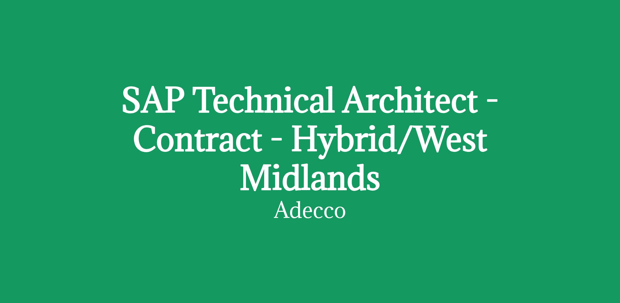 SAP Technical Architect: 6 Month Contract - Hybrid/West Midlands