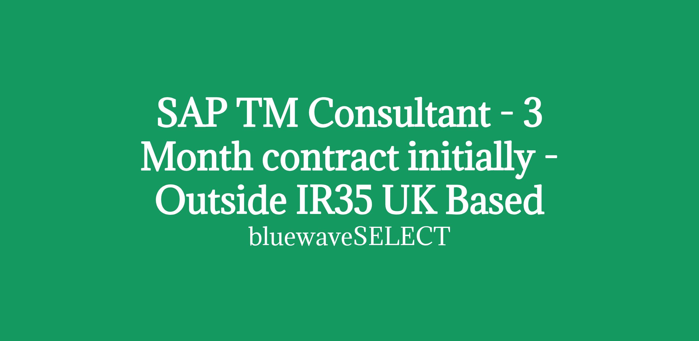 SAP TM Consultant - 3 Month contract initially - Outside IR35 UK Based