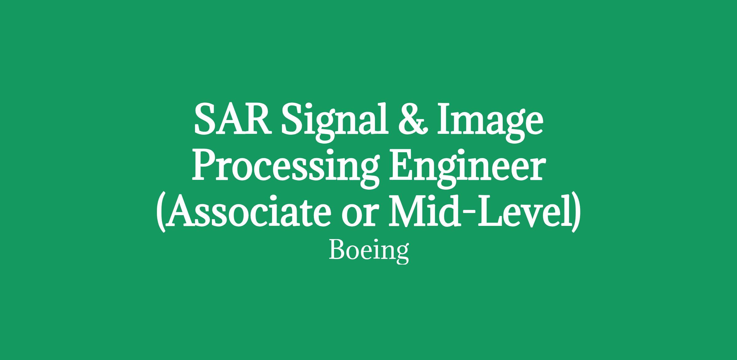 Boeing Defense, Space and Security (BDS), is looking for an Associate or Mid-Level SAR Signal & Image Processing Engineer (Level 2 or 3) to join the Kent Space SEIT team located in Kent, WA (Seattle, WA). This position will focus on developing radar analysis and algorithms in a mission-critical environment that directly empowers our defensive capabilities. You will develop and validate requirements for Synthetic Aperture Radar (SAR) systems, perform trade studies, design and run tests to verify performance, support engineering compliance, and provide lifecycle root-cause analysis. Work is performed under general direction with contributions to proposals as needed.