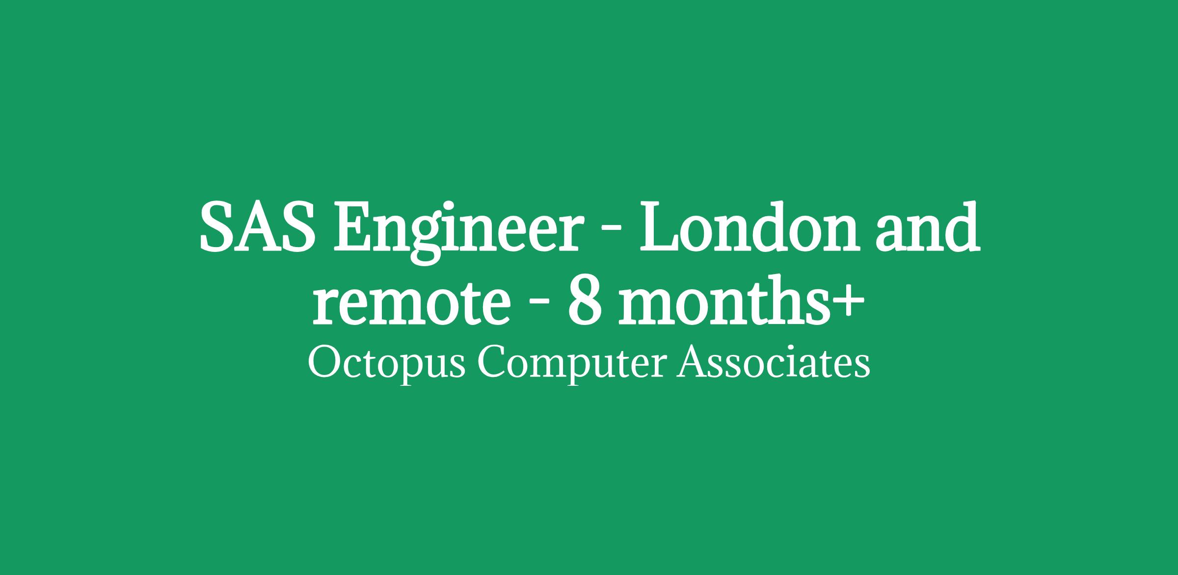 SAS Engineer - London and remote - 8 months+