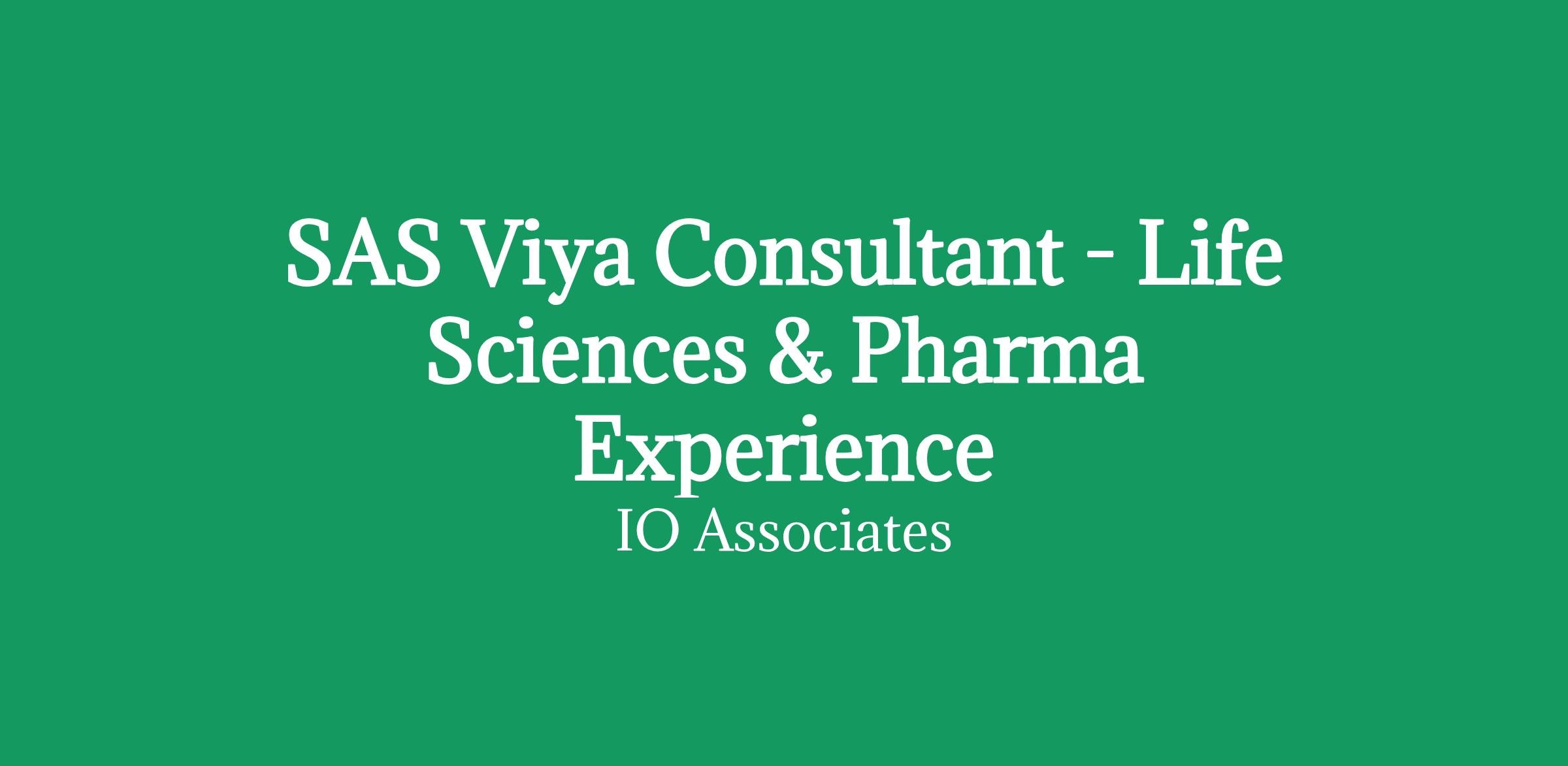 SAS Viya Consultant (Contract) - Pharma/Life Sciences