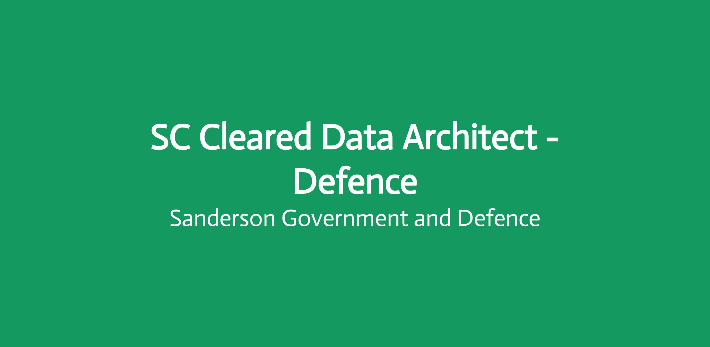 SC Cleared Data Architect - Defence (Contract)