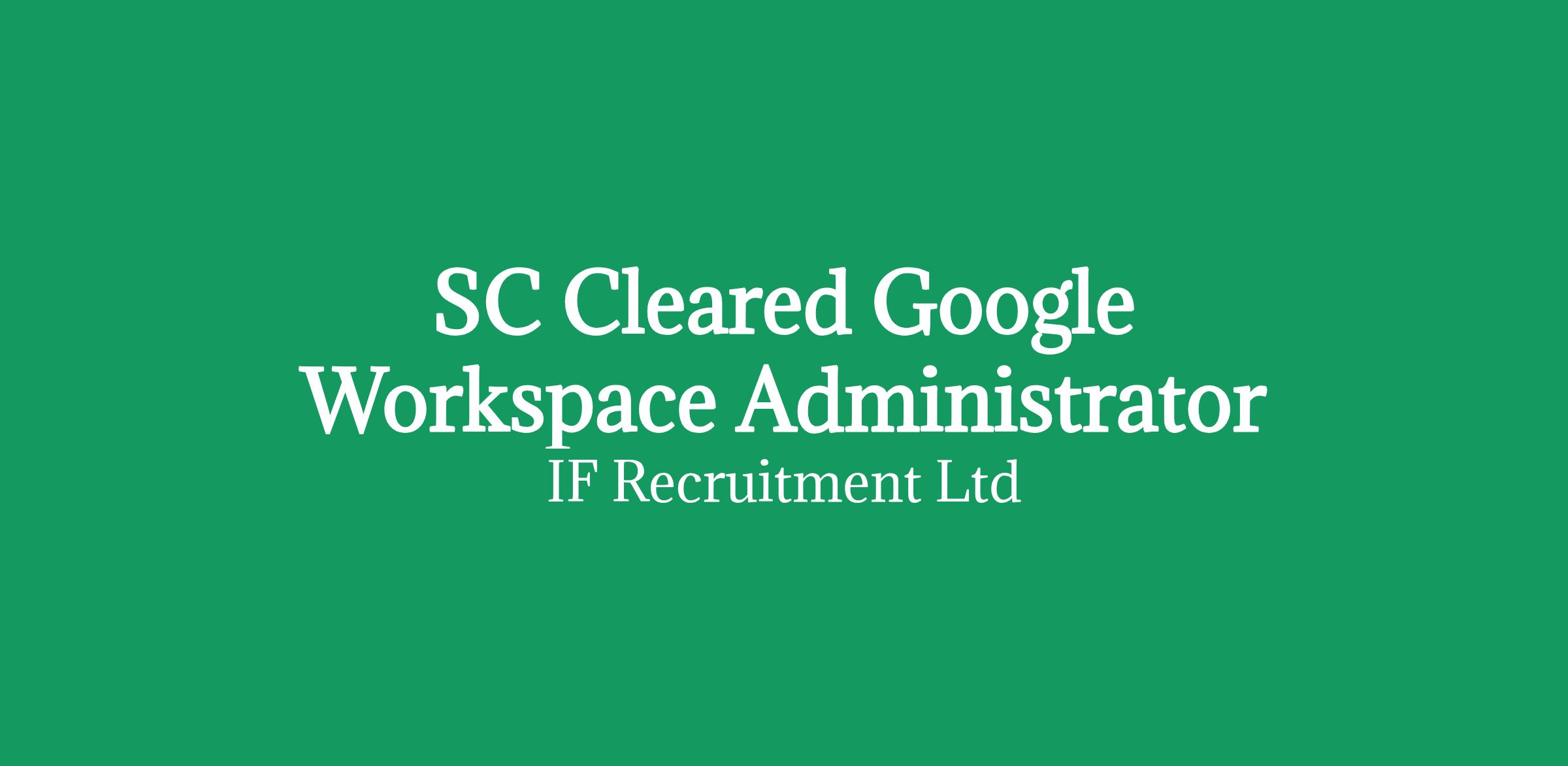 Our client is undergoing a significant Digital Transformation and has a 5 month project for a Google Workspace Administrator with active SC Clearance.