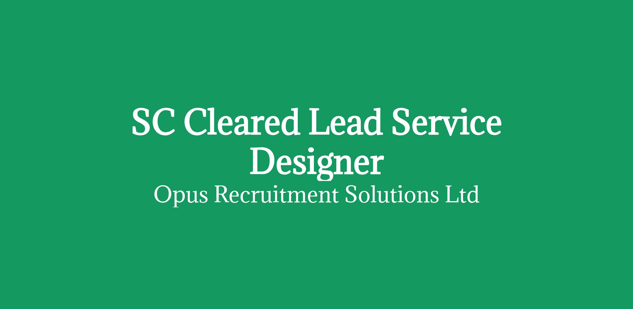 We are working with a consultancy feeding into the public sector looking for an actively active SC cleared lead service designer