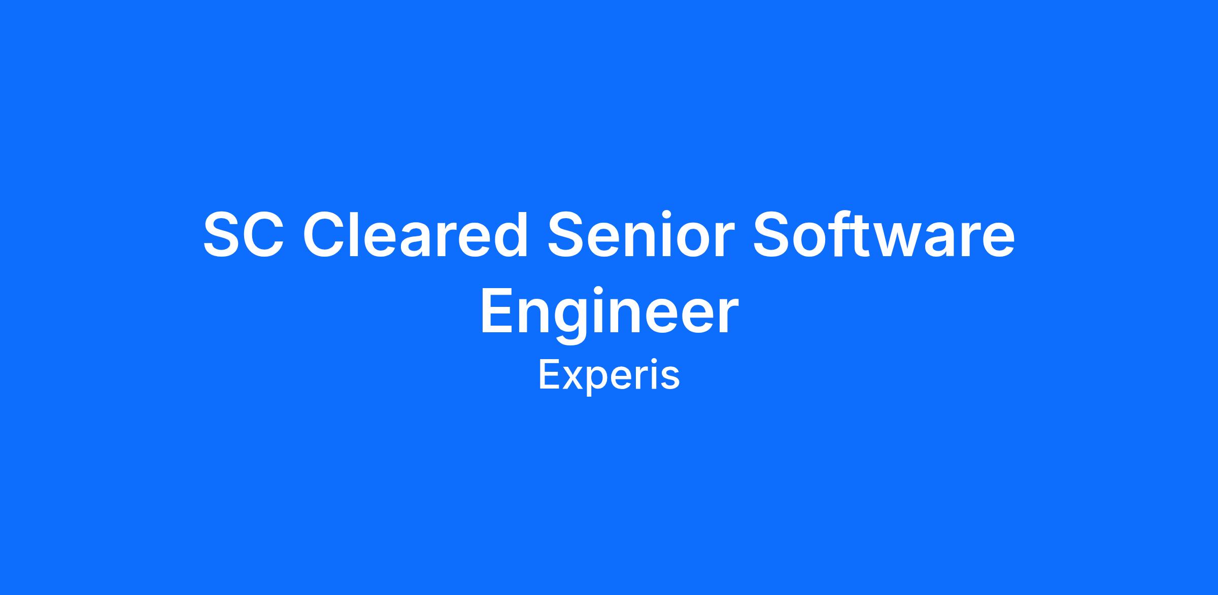 Job Title: SC Cleared Senior Software Engineer