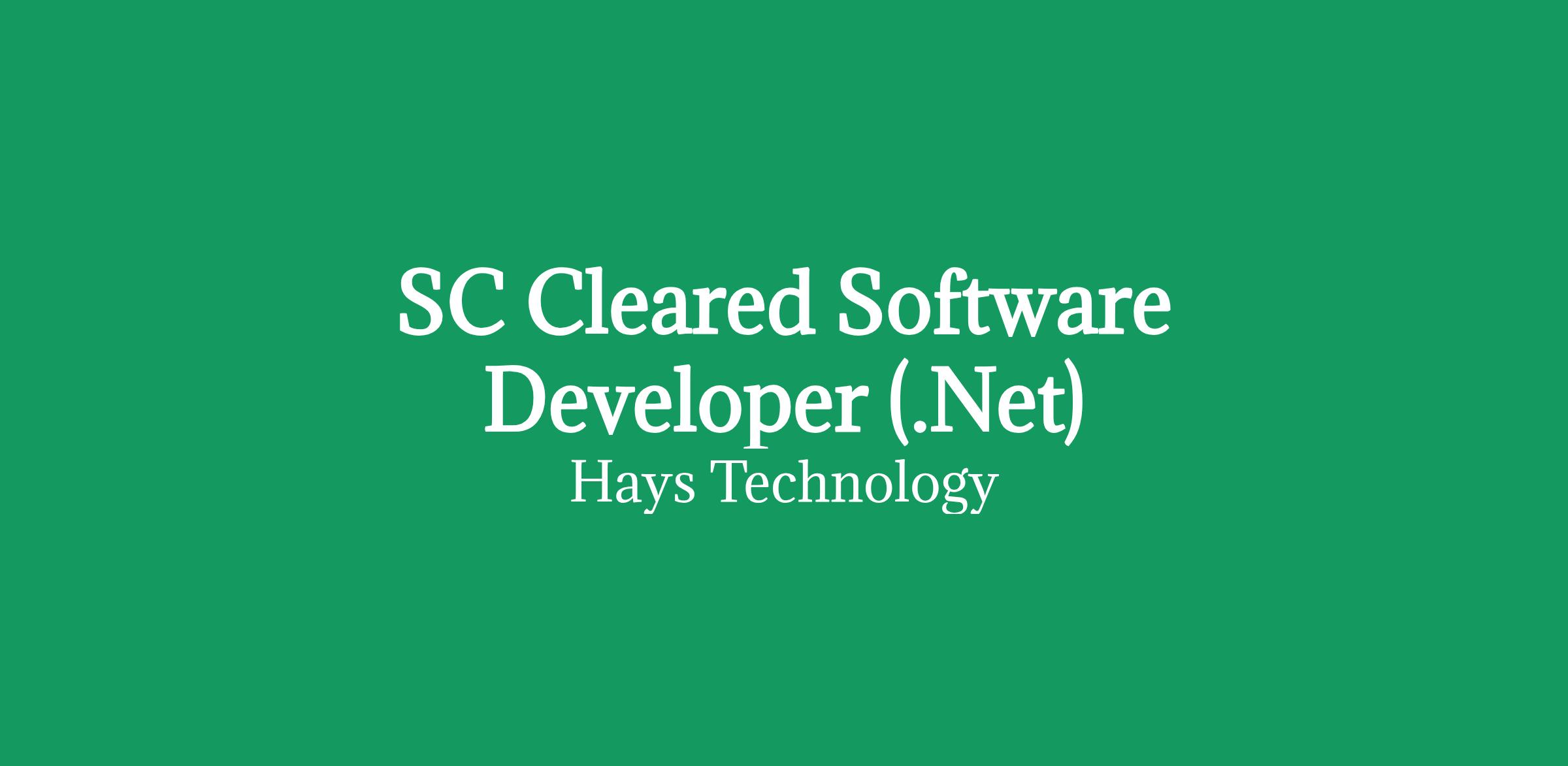 Hays are now looking for an SC Cleared Software Developer for one of our local clients: