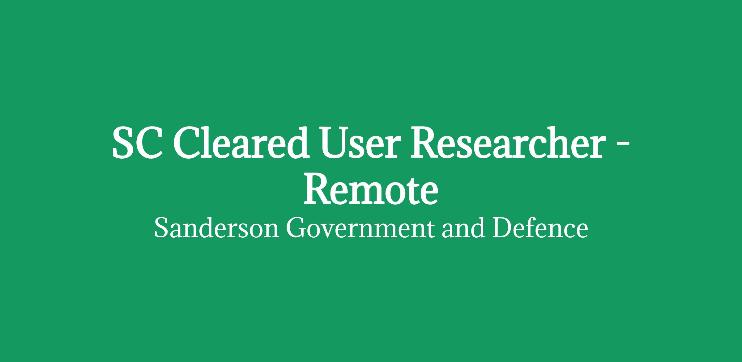 SC Cleared User Researcher - Remote - £540/day Inside IR35