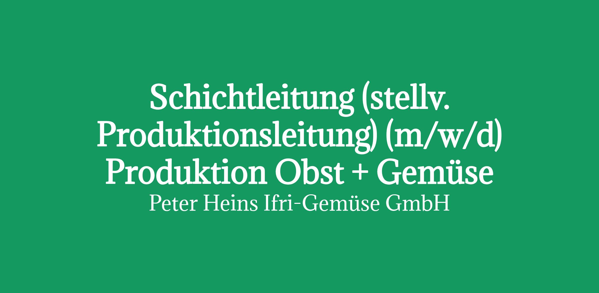 Schichtleitung (stellv. Produktionsleitung) (m/w/d) Produktion Obst + Gemüse am Standort Gallin