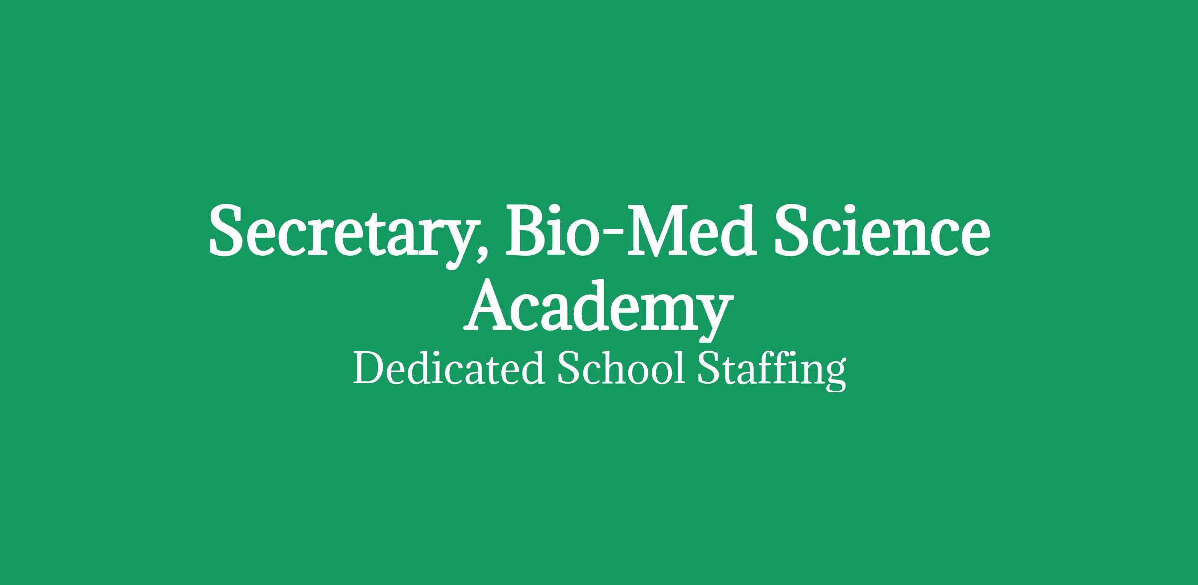 Dedicated School Staffing is proud to support Bio-Med Academy for the recruitment of substitute school based employment opportunities. Substitute secretaries play an important role in our schools by maintaining school safety and performing important administrative tasks which help in the day-to-day running of a school.