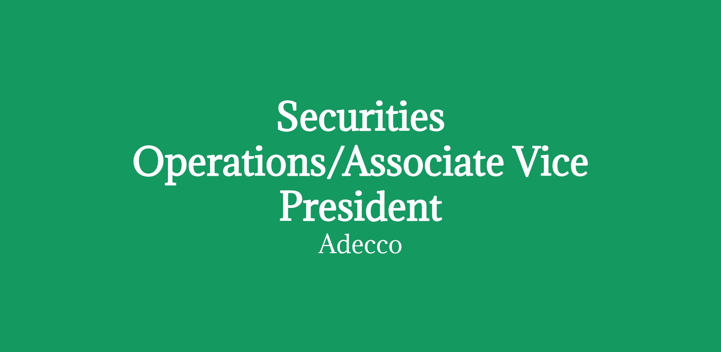 Securities Operations - Associate Vice President