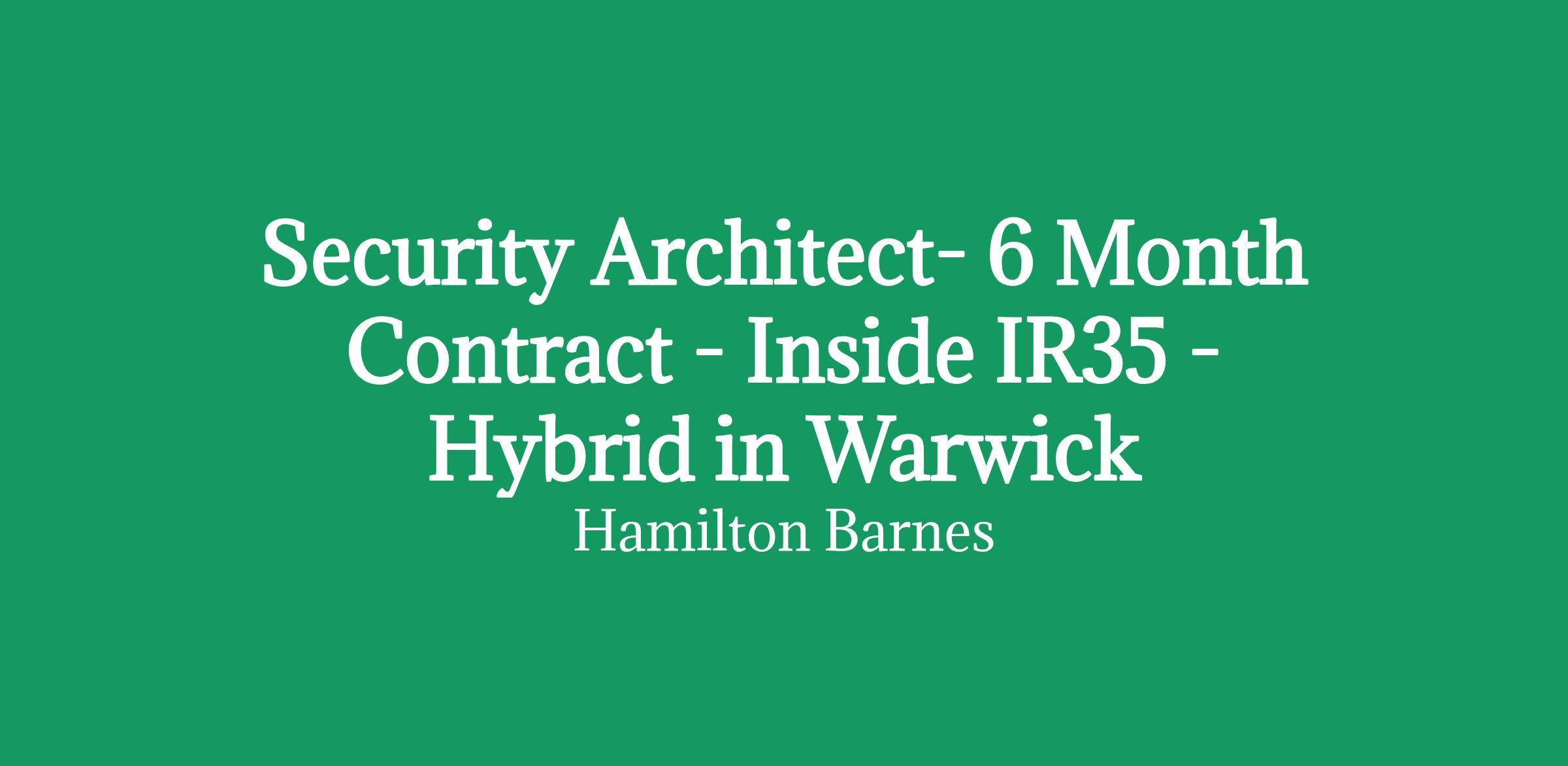 Security Architect- 6 Month Contract - Inside IR35 - Hybrid in Warwick