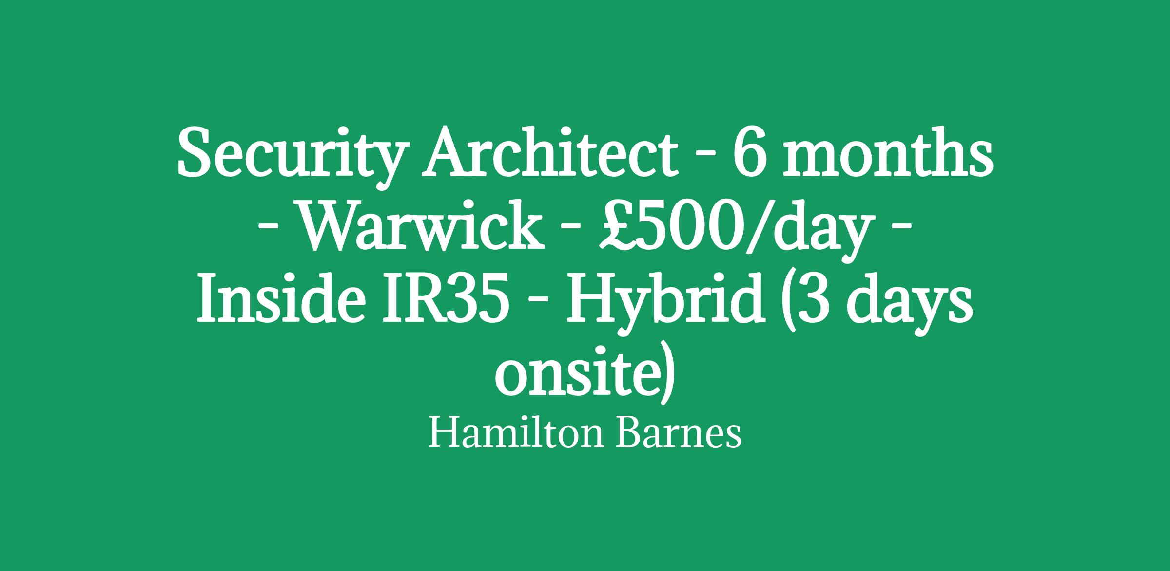 Security Architect - 6 months - Warwick - £600/day - Inside IR35 - Hybrid (3 days onsite)