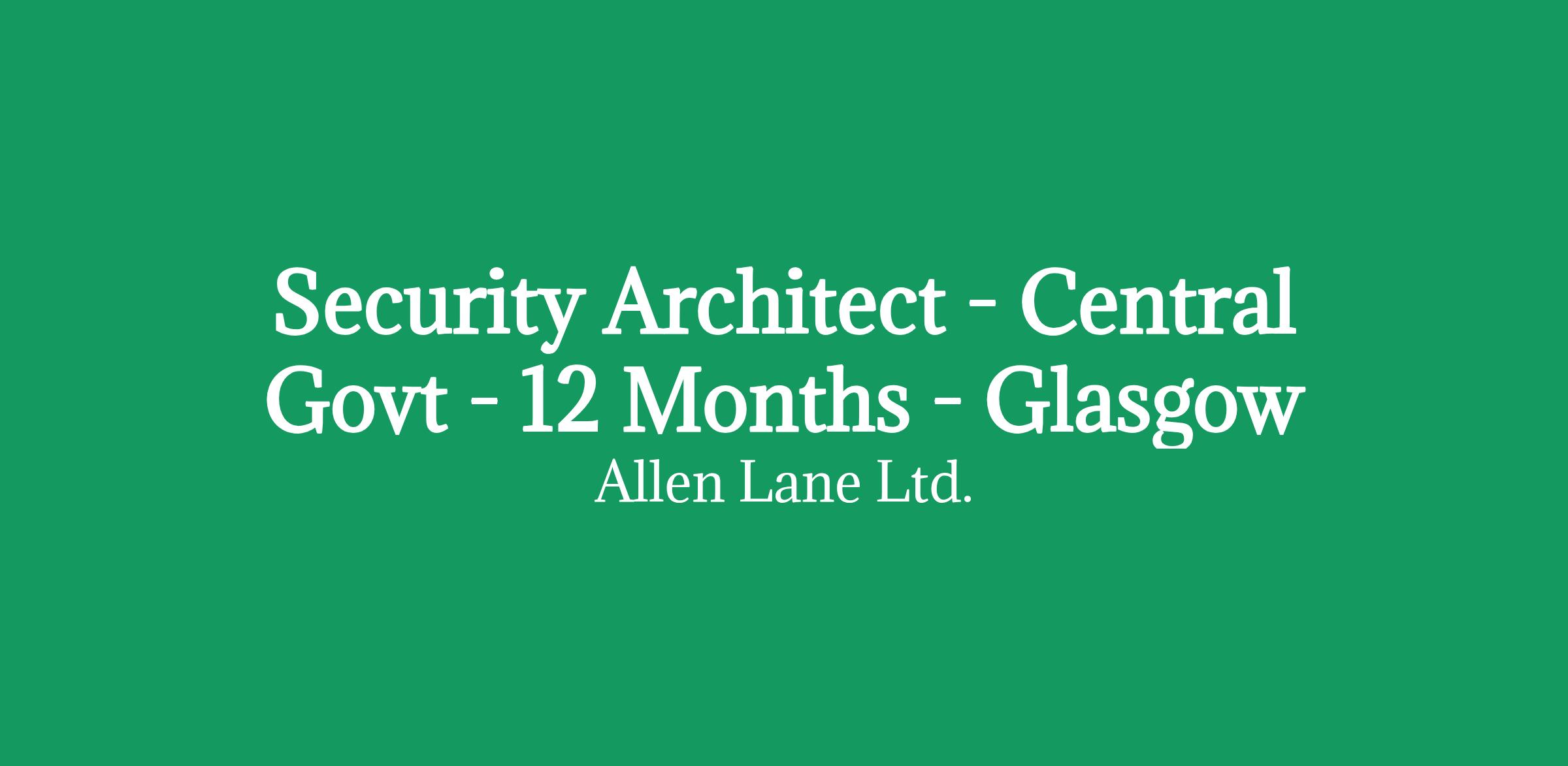 Security Architect - Central Government Client - SC/DV Clearance - 12 Months - Glasgow