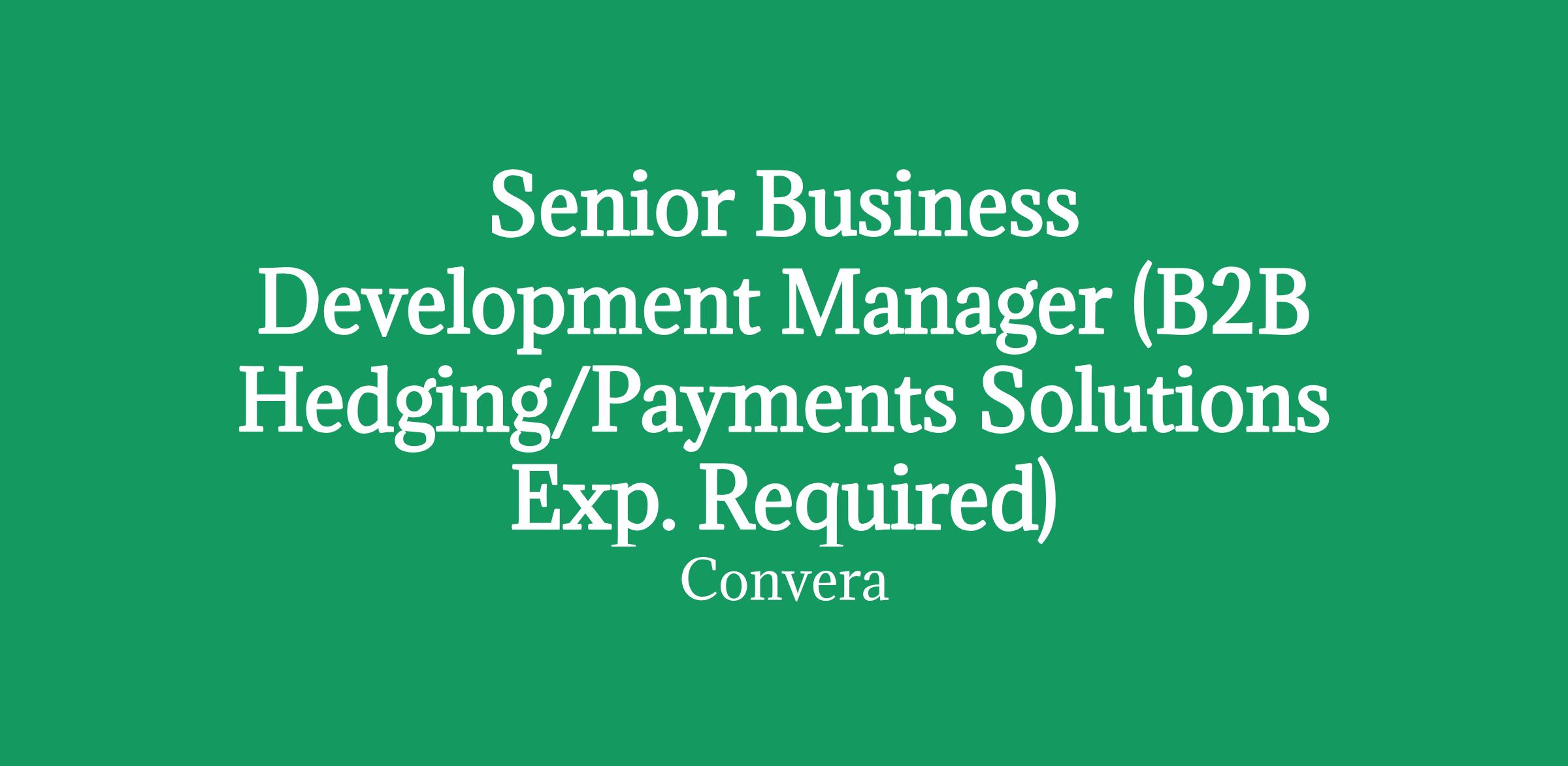 Senior Business Development Manager (B2B Hedging/Payments Solutions Exp. Required)