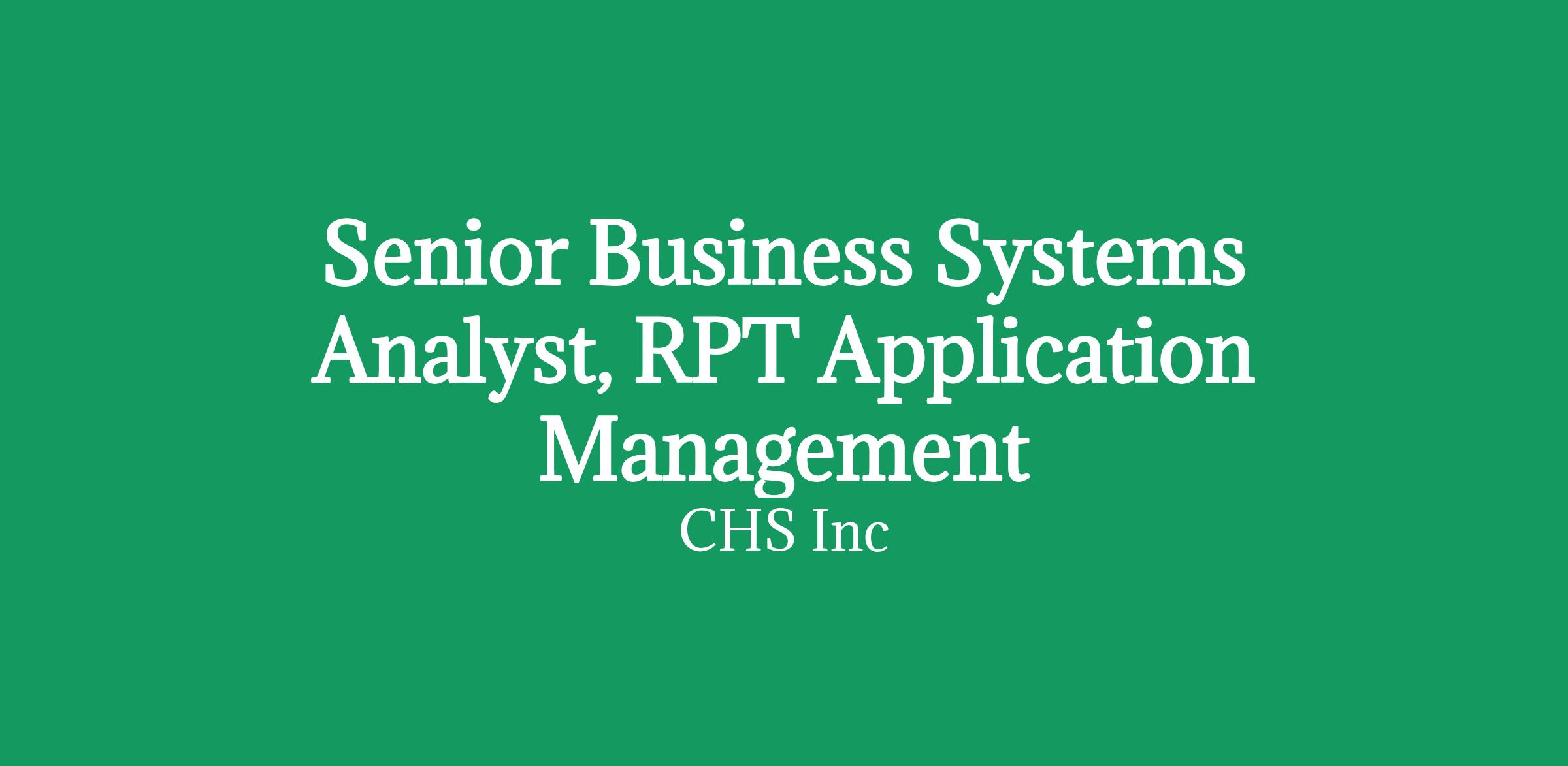 Summary CHS has an exciting opportunity in our Information Technology group. We are looking for a Senior Business Systems Analyst to join our growing team and provide support for our Energy Refineries, Pipelines and Terminals (RPT) business. You must have excellent communication skills, both verbal and written, be detail oriented, able to work in a team environment and independently, and have the ability to solve complex problems.