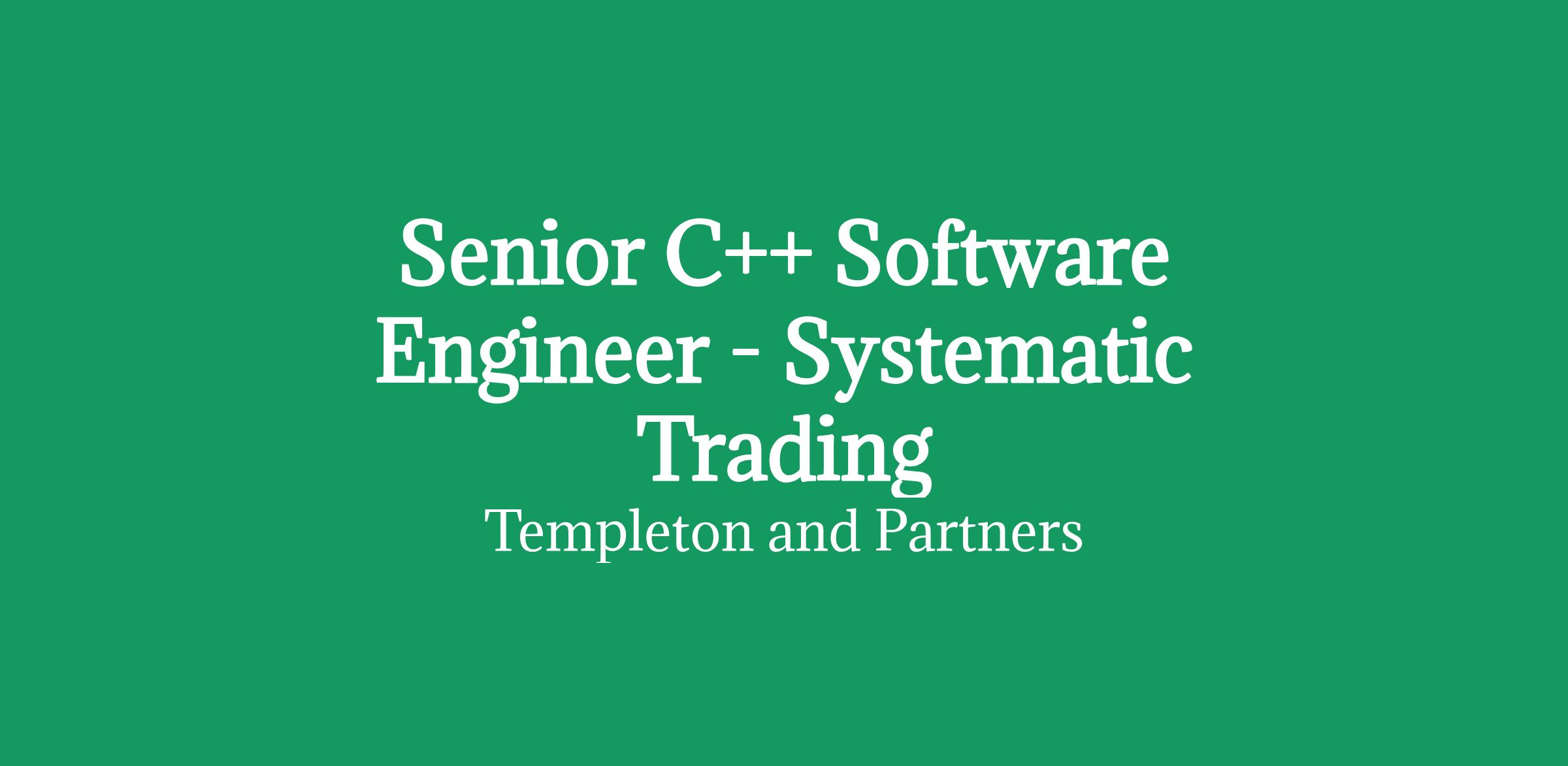 - Senior C++ Software Engineer - Systematic Trading