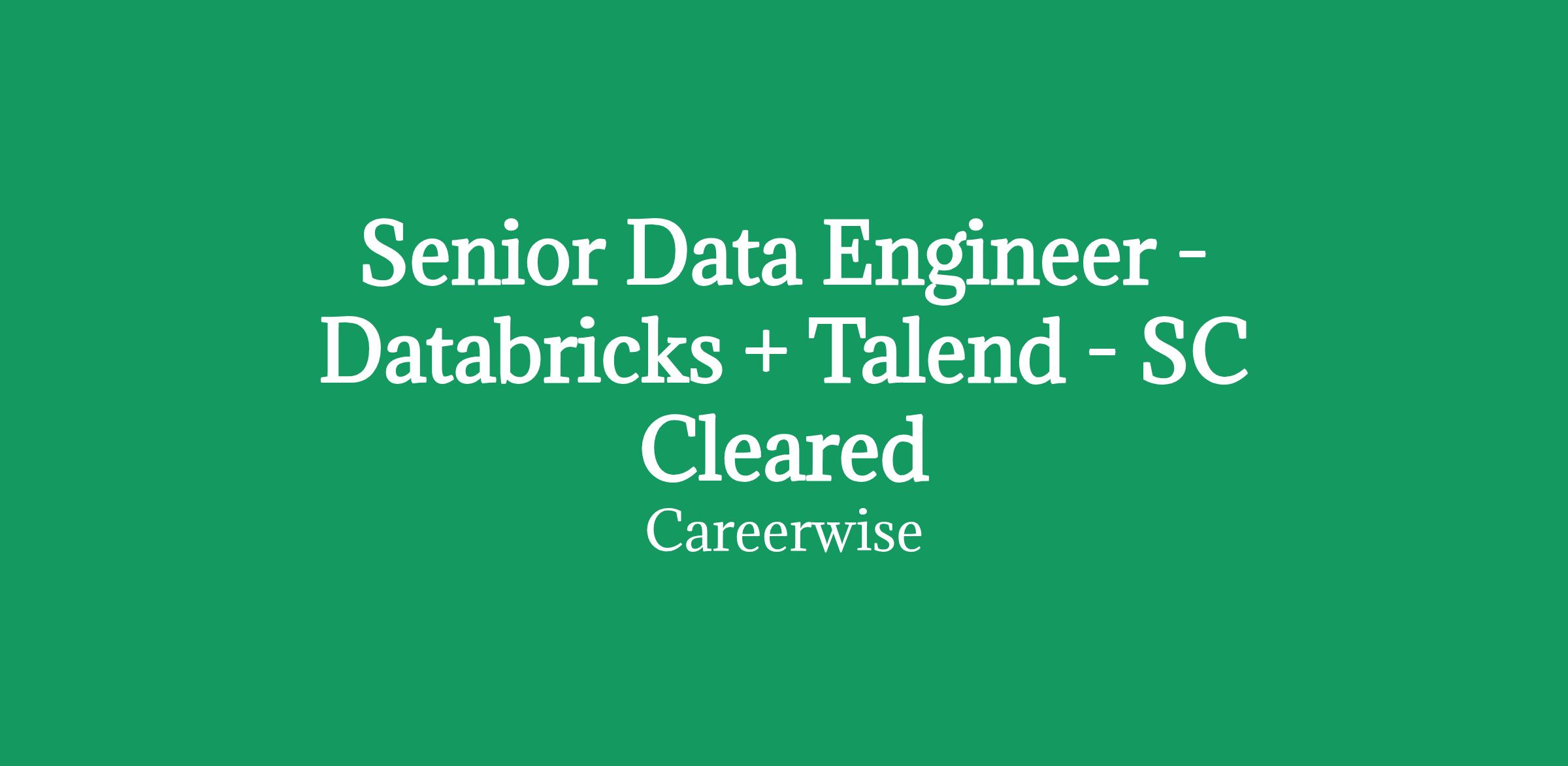 Senior Data Engineer (Databricks + Talend ETL) - SC Cleared - Remote (UK) | Contract Opportunity