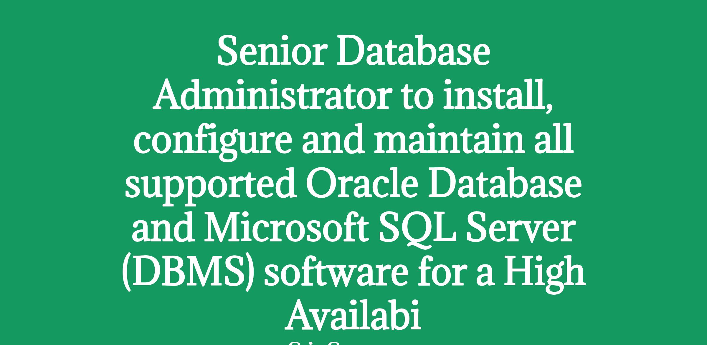 Senior Database Administrator to install, configure and maintain all supported Oracle Database and Microsoft SQL Server (DBMS) software for a High Availabi