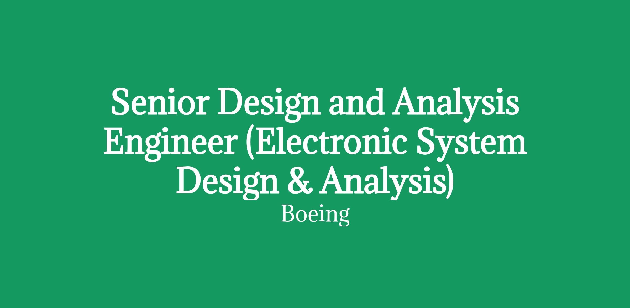 Senior Design and Analysis Engineer (Electronic System Design & Analysis)