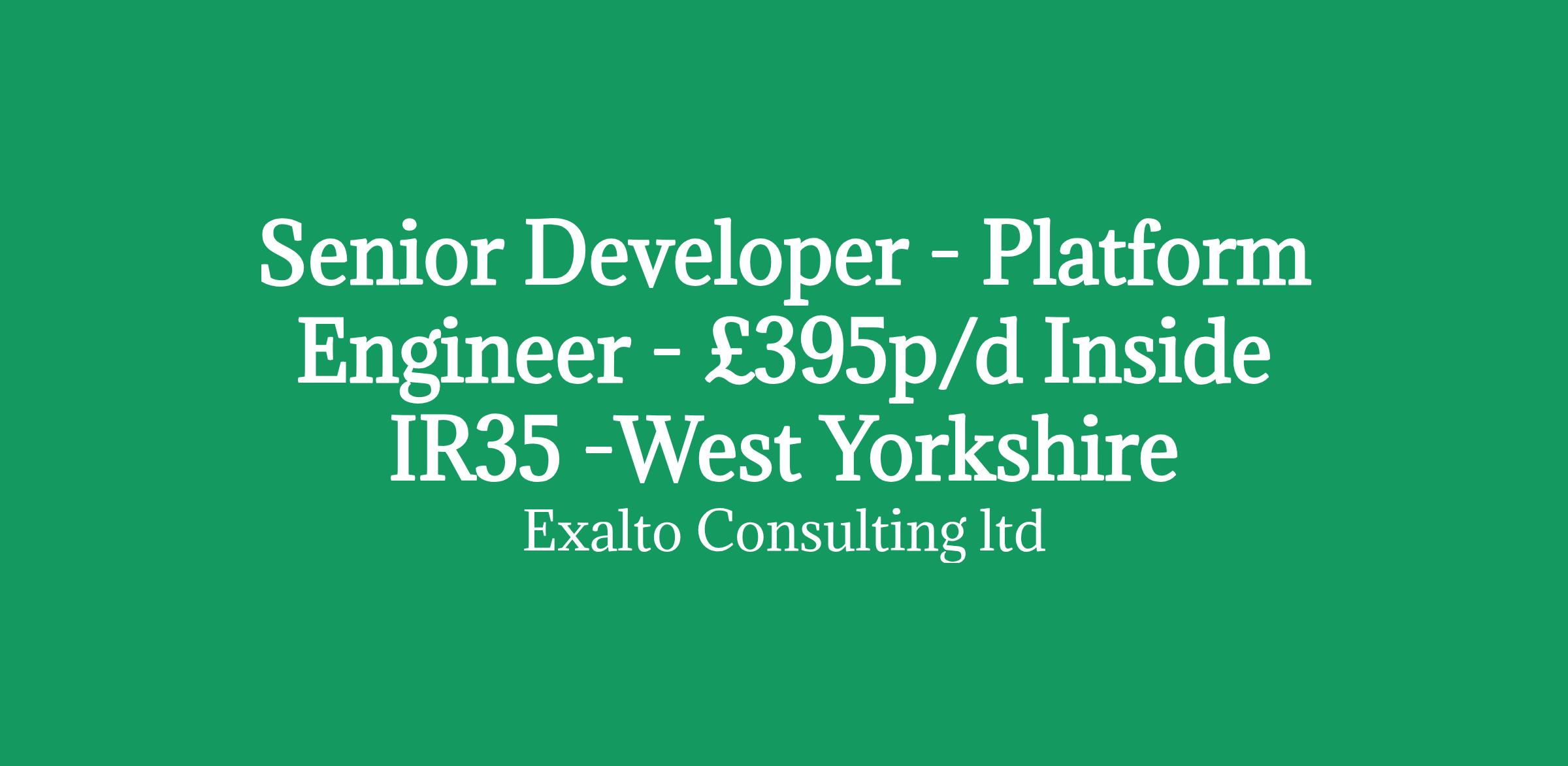 Senior Developer - Platform Engineering Contract Inside IR35 £395 per day 6 months+ UK Wide with travel to Leeds once per fortnight