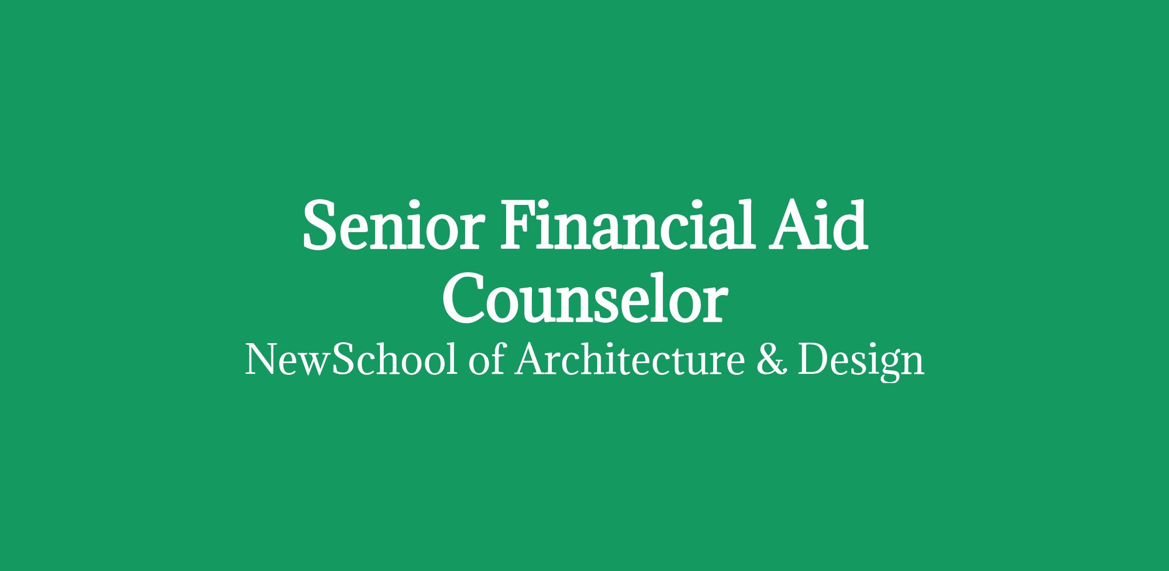 The New School of Architecture & Design's team seeks a qualified Senior Financial Aid Advisor. The Senior Financial Aid Counselor is an onsite position at our Downtown San Diego campus.