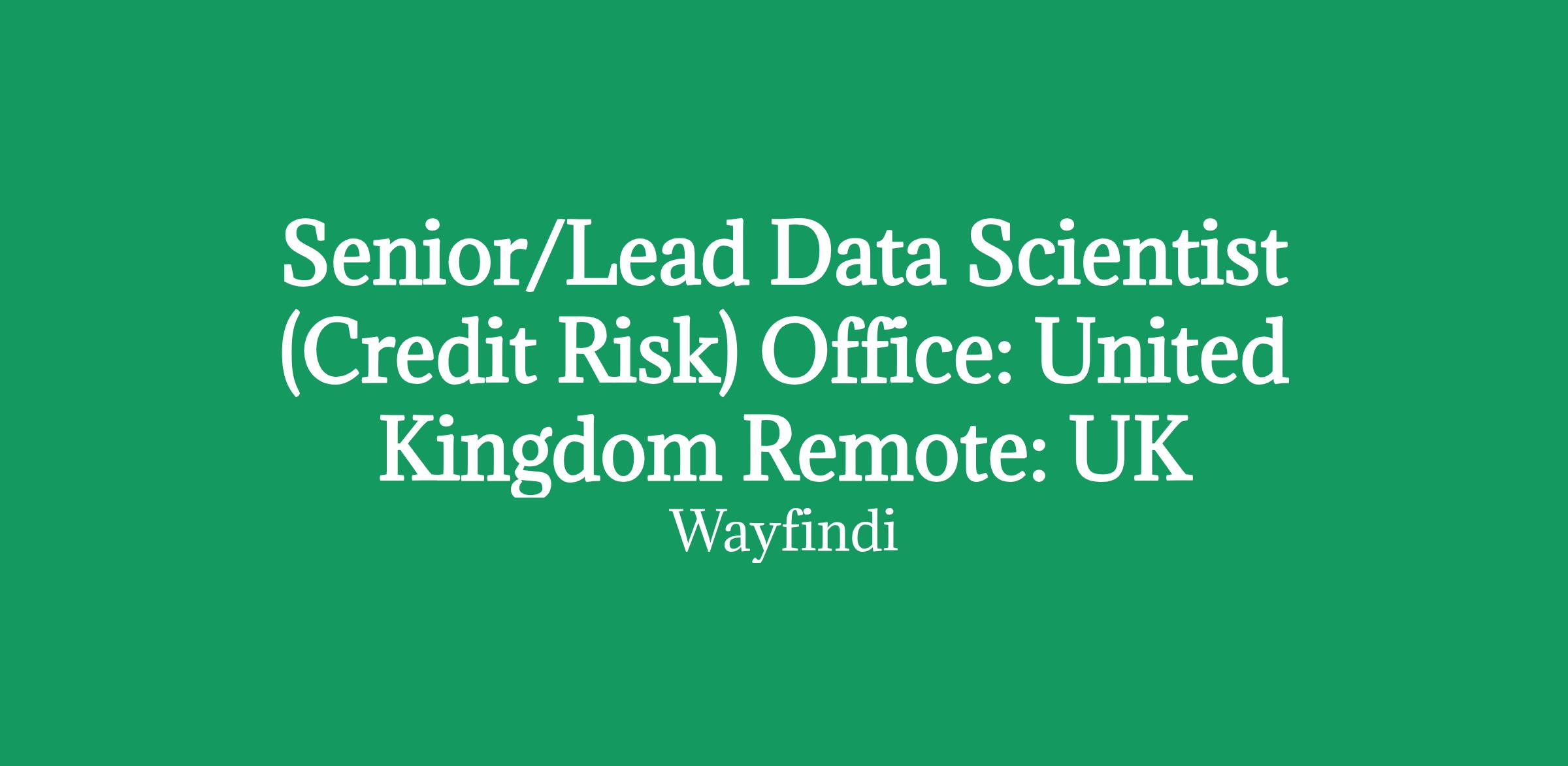 Senior/Lead Data Scientist (Credit Risk) Office: United Kingdom Remote: UK Apply for this role