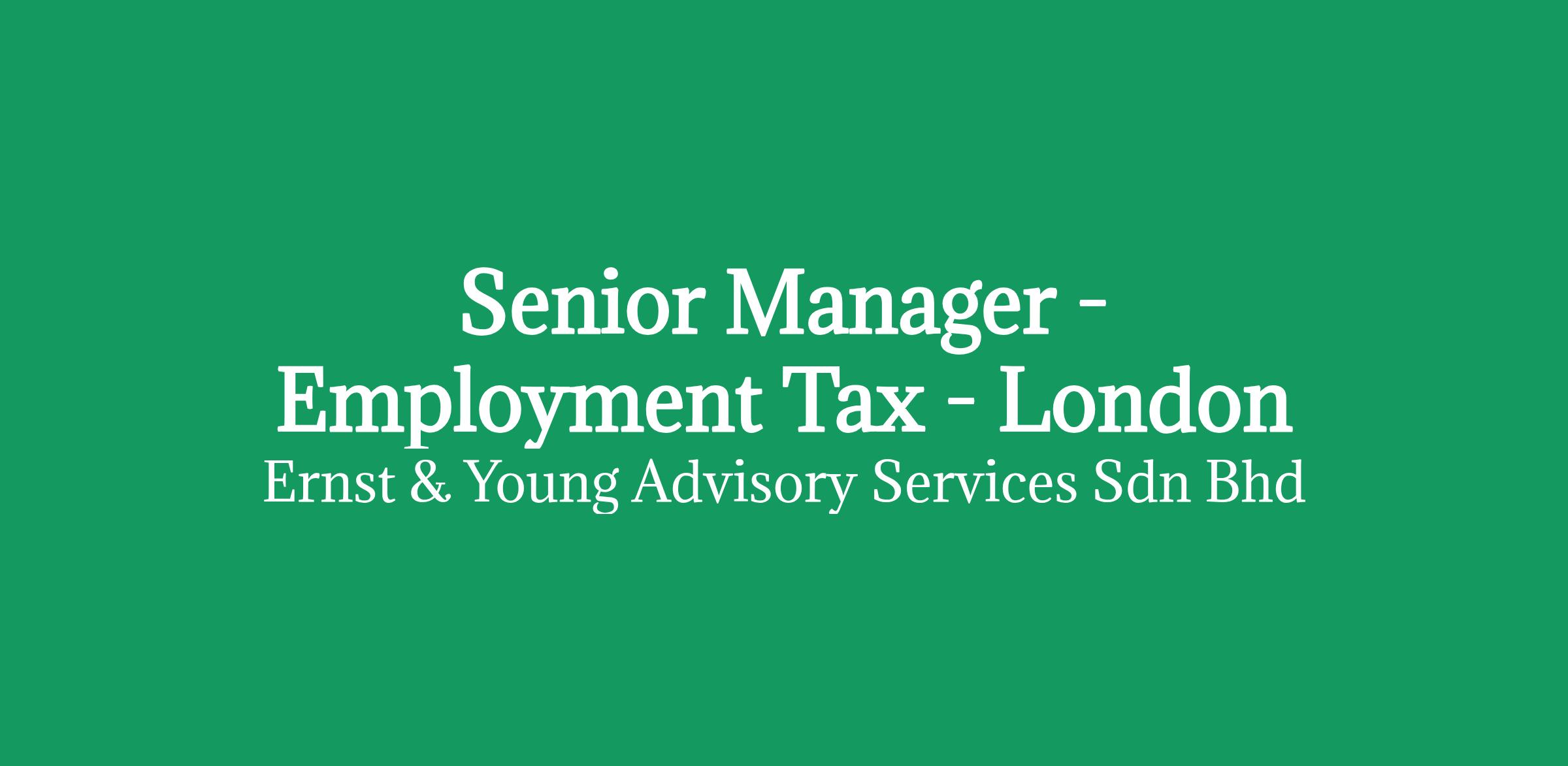 Senior Manager - Employment Tax - London
