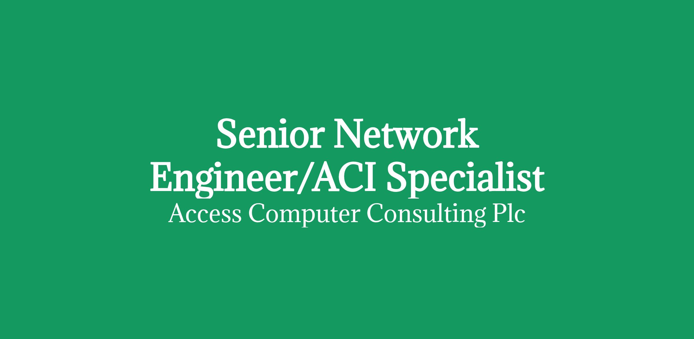 Role: Senior Network Engineer/ACI Specialist