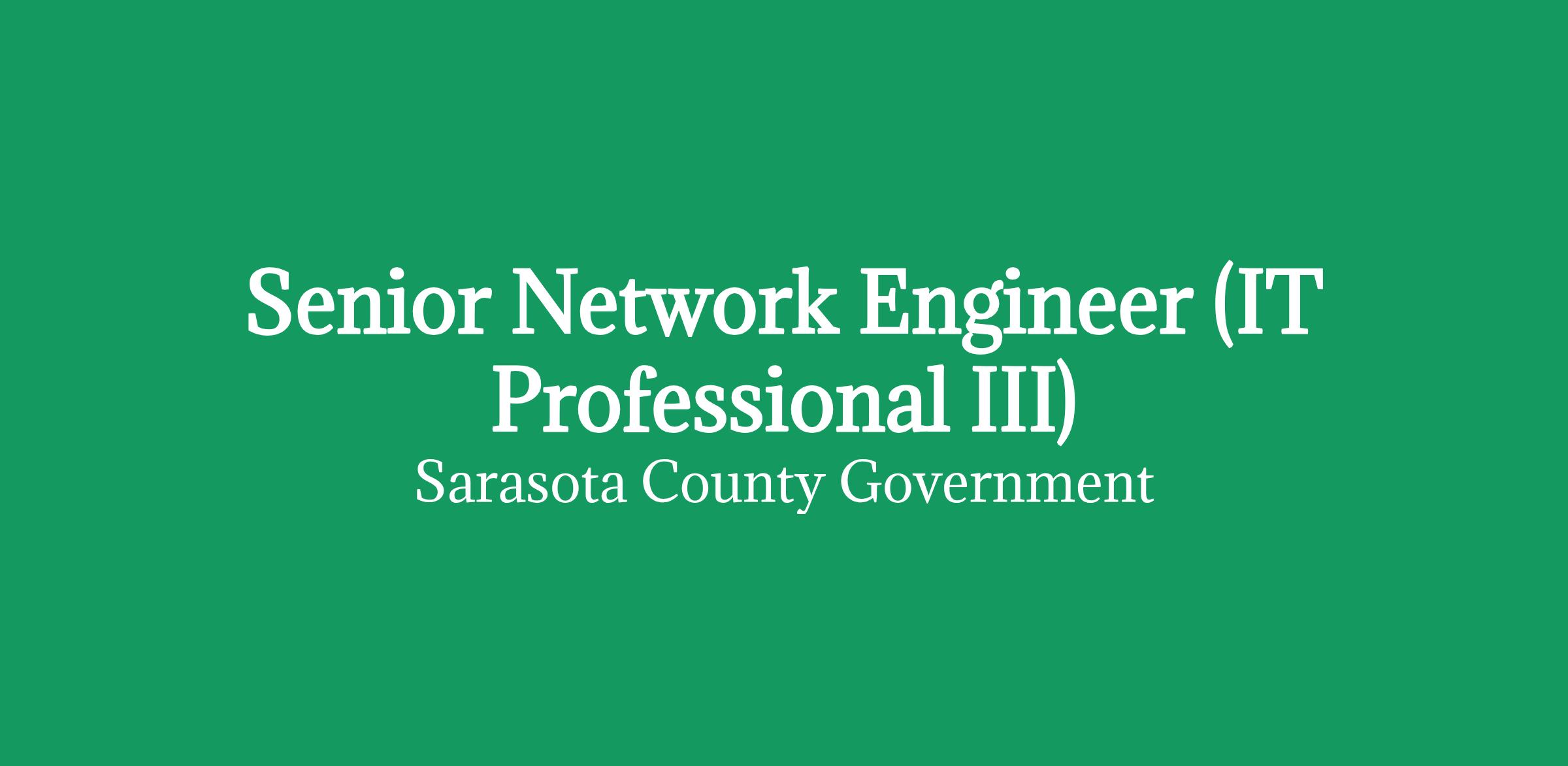 Start Here. Grow Here. Stay Here. As our Senior Network Engineer, you will play a crucial role, responsible for designing, implementing, and maintaining Sarasota County's network infrastructure (LAN & WAN), including hardware and software. Examples of job responsibilities include troubleshooting complex network issues, ensuring optimal network performance, implementing security measures, and mentoring junior team members. The ideal candidate is motivated to stay updated on emerging network technologies, as you would oversee the overall health and efficiency of the network. The pay starts at $34.28/hr and could start as high as $38.00/hr (based on experience)! To be successful in this role, you will need current knowledge of infrastructure connectivity technologies, protocols, and methodologies. Examples are: CWDM/DWDM, optical transport, Layer 1/2/3, switch configuration, routing concepts, WIFI, etc. Apply today! About the Position In this role, key responsibilities include the following: Network Design and Implementation: Planning, designing, and implementing network architectures, including LAN, WAN, wireless, and data center networks, utilizing various networking protocols and technologies. (OSPF and BGP Layer 3 routing architecture planning, DWDM planning and deployment, structured cabling, optical routing, etc). Must have BGP routing experience to configure and support a border router. Must have experience creating and implementing VLANs. Troubleshooting and Maintenance: Identifying and resolving complex network issues, analyzing network performance metrics, and performing preventative maintenance to minimize downtime. Installing and replacing equipment, being on-call, and providing support. Must know the various types of category cabling (5e, 6, 6a) and the types of fiber and differences between them. The prospective candidate must be able to access a telecommunications room and identify the various cabling type, infrastructure, and equipment. Network Security: Implementing and managing network security measures like Network Access Control and Optical Transport encryption to protect network integrity. Hardware Configuration: Installing, configuring, and managing network hardware such as routers, switches, load balancers, and firewalls. Perspective candidate must have experience unboxing, installing a switch or router in a rack or cabinet, and MUST have experience configuring the equipment. Hands-on experience with configuring global and port configurations. Must have experience using Cisco command line for configuring Cisco switches or routers. Capacity Planning: Proactively monitoring network usage, identifying potential bottlenecks, and planning for future network capacity needs. Documentation and Reporting: Creating and maintaining comprehensive network documentation, including diagrams, configuration details, and incident reports. Team Leadership and Mentoring: Guiding and mentoring junior network engineers, providing technical expertise and support. Collaboration: Working with other IT teams (systems administrators, security engineers) to integrate network systems with other infrastructure components. Staying Updated: Keeping abreast of emerging network technologies, industry best practices, and vendor updates. About the Schedule Work Hours: Full-Time, 40 hours per week. Monday - Friday, 8:00 a.m. - 5:00 p.m. E-Work/Hybrid Work: Currently, this position is eligible to e-work up to 1 day per week! After you complete your first 6 months, contingent on work requirements and other factors, you'll be eligible for this fantastic benefit. This position is required to participate in an on-call rotation with the rest of the team. This includes the availability to work within the Emergency Operations Center (EOC) during emergency events (hurricanes, tornadoes, other weather or emergency events). This position has been assigned as an e-role within the county, which is to support the EOC before, during, and after an emergency event, which will require the candidate to stay overnight (or to work nights) at this location to support emergency efforts. All county employees, regardless of their role, must be flexible during an emergency activation. About You To be considered for this role, you must have the following: Minimum of a 4-year degree and 2 years of related work experience. OR: Bachelor's degree in Information Technology, Computer Science, Information Systems, Business Administration, Public Administration, or a related field and 2 years of related work experience. OR: Master's degree and 1 year of related work experience. OR: 6+ years of progressively responsible professional or technical experience as described herein may be substituted on a year-for-year basis for the required college degree. Valid Florida Driver's License by date of hire. The ideal candidate has the following knowledge, skills, and/or abilities: Several years of hands-on experience as a network engineer. This is defined as unboxing equipment, installing equipment, and configuring equipment (routers, switches, and WIFI equipment) Expert with Cisco command line to access, configure, and troubleshoot routers and switches. Relevant network certifications (CCNA, CCNP, CCIE). Deep understanding of network protocols (TCP/IP, BGP, OSPF, VRF). Expertise in network hardware and software configuration (Cisco, Juniper, etc.). Strong troubleshooting, problem-solving, communication, and collaboration skills. Network security knowledge and experience. Ability to work independently and as part of a team. Subject to Passing Substance Screening: This position is subject to passing a pre-employment substance screening. An applicant who fails to pass a required drug screening test shall be disqualified from employment in any class for a period of 5 years. CJIS Clearance: The successful candidate will be subject to an extensive background check(s) as part of the hiring process. Physical Demands: Employees in this role must occasional