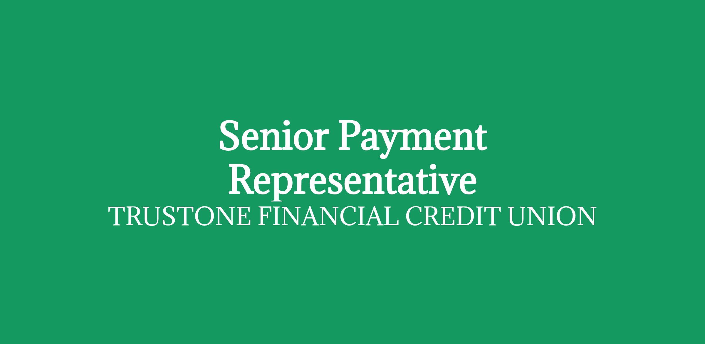 Ensure internal and external members' Payments questions, concerns and/or requests are answered and/or solved utilizing strong service skills while being completed in a timely and accurate manner. Perform and process the daily functions of the Payments Department. Contribute and collaborate to implement strategies to achieve the Payments department goals and initiatives. Demonstrate and live TruStone Financial's Core Values and Mission in all interactions with all internal and external members.